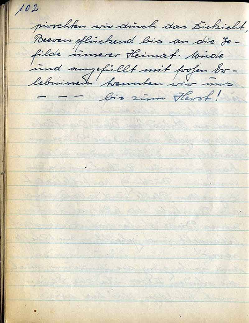 pirschten wir durch das Dickicht, Beerenpflückend bis an die Gefilde unserer Heimat. Müde und angefüllt mmit frohen Erlebnissen trennten wir uns - - - - - bis zum Herbst!