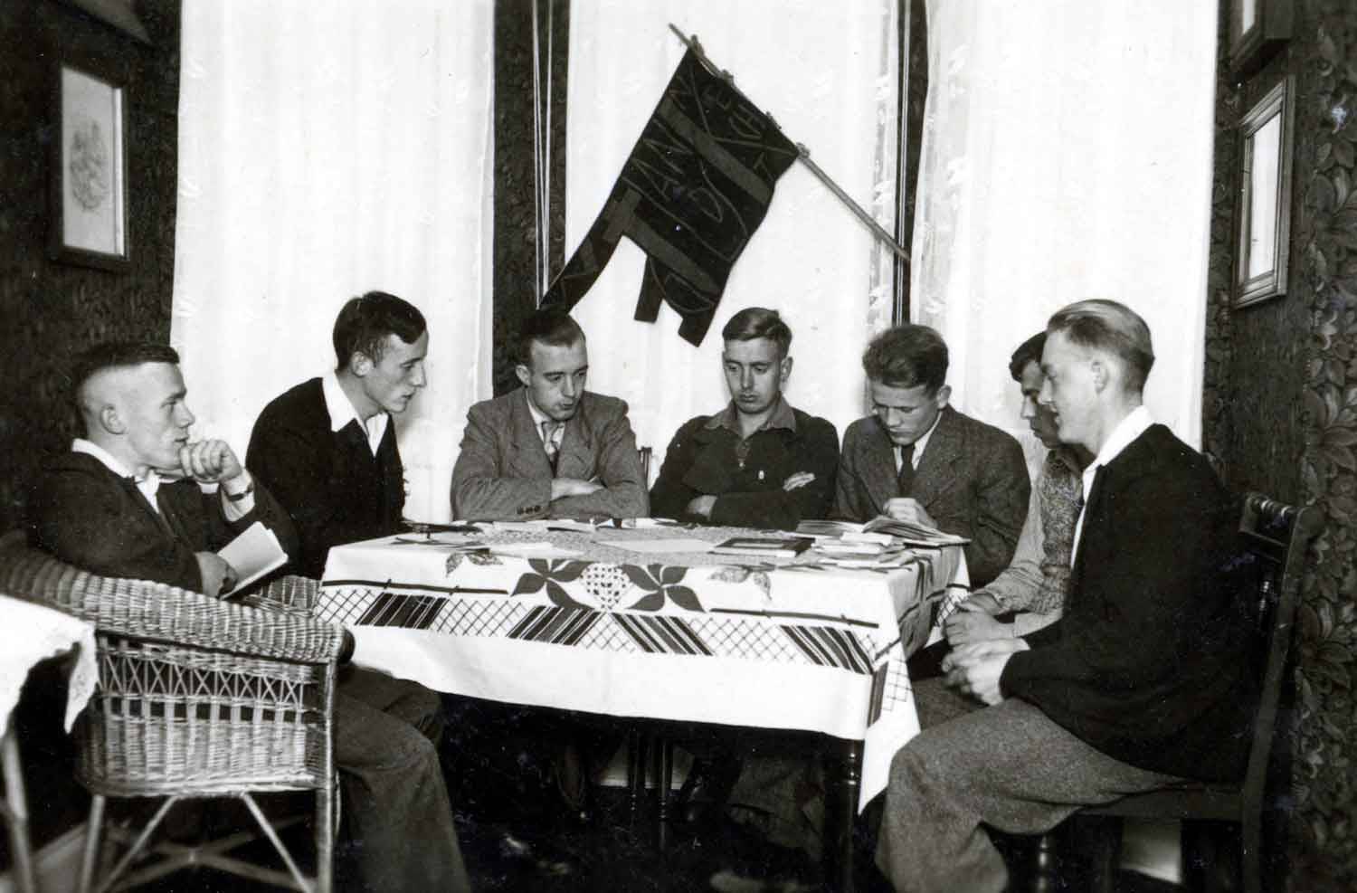 Die Gruppe steht in engem Zusammenhang mit der Bergisch Gladbacher Familie Engeländer. Zwei Engeländer-Söhne waren Sturmscharmitglieder, und ein dritter und zugleich der älteste, Hermann Engeländer, setzte sowohl der Gruppe als auch dem spirituellen Zentrum der katholischen Jugendbewegung des Rheinlands – „Haus Altenberg“ - später in seiner Dokumentation „Wir waren Zeuge“ eine Art Denkmal.[1] Von ihm findet sich hier an anderer Stelle zudem ein persönliches Tagebuch aus dem Jahr 1942.
