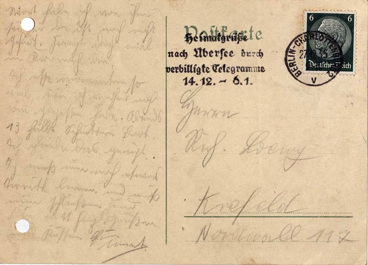 Ernst Loewy an seine Eltern, 25. Dezember 1935