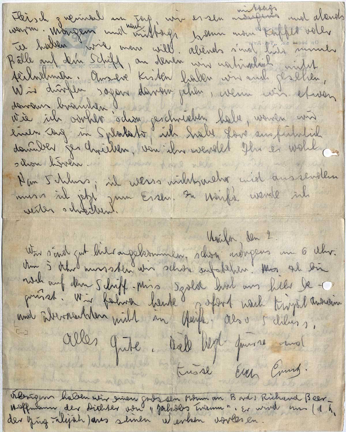 Übrigens haben wir einen großen Mann an Bord: Richard Beer-Hofmann, den Dichter von „Jakobs Traum“. Er wird uns (d. h. der Jug.-Alijah) aus seinen Werken vorlesen.