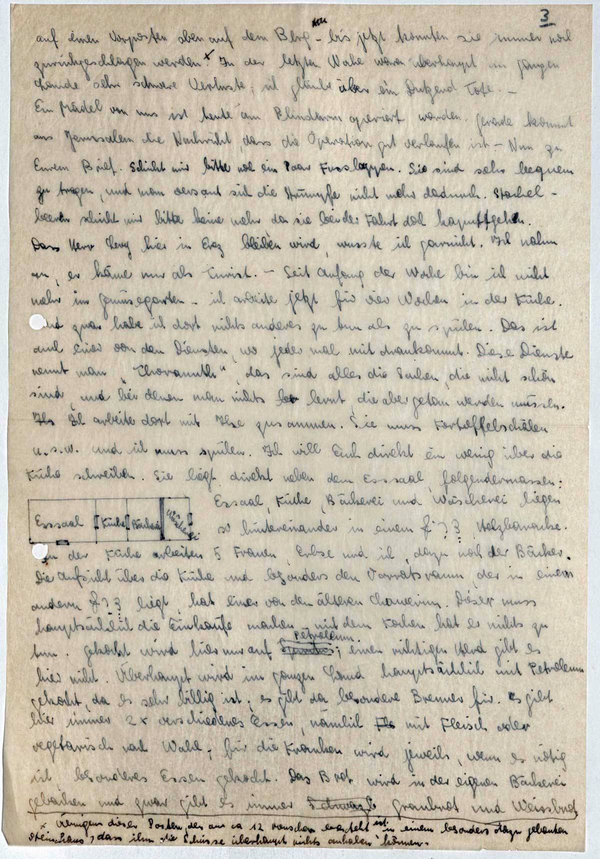 Übrigens bitte ich Euch, mir bald wieder Luftpostpapier zu schicken, ich habe in 2 Briefen die Hälfte schon verbraucht. Kuverts habe ich noch genug.