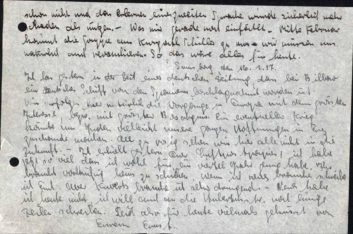 Ernst Loewy an seine Eltern, 14. Januar 1937