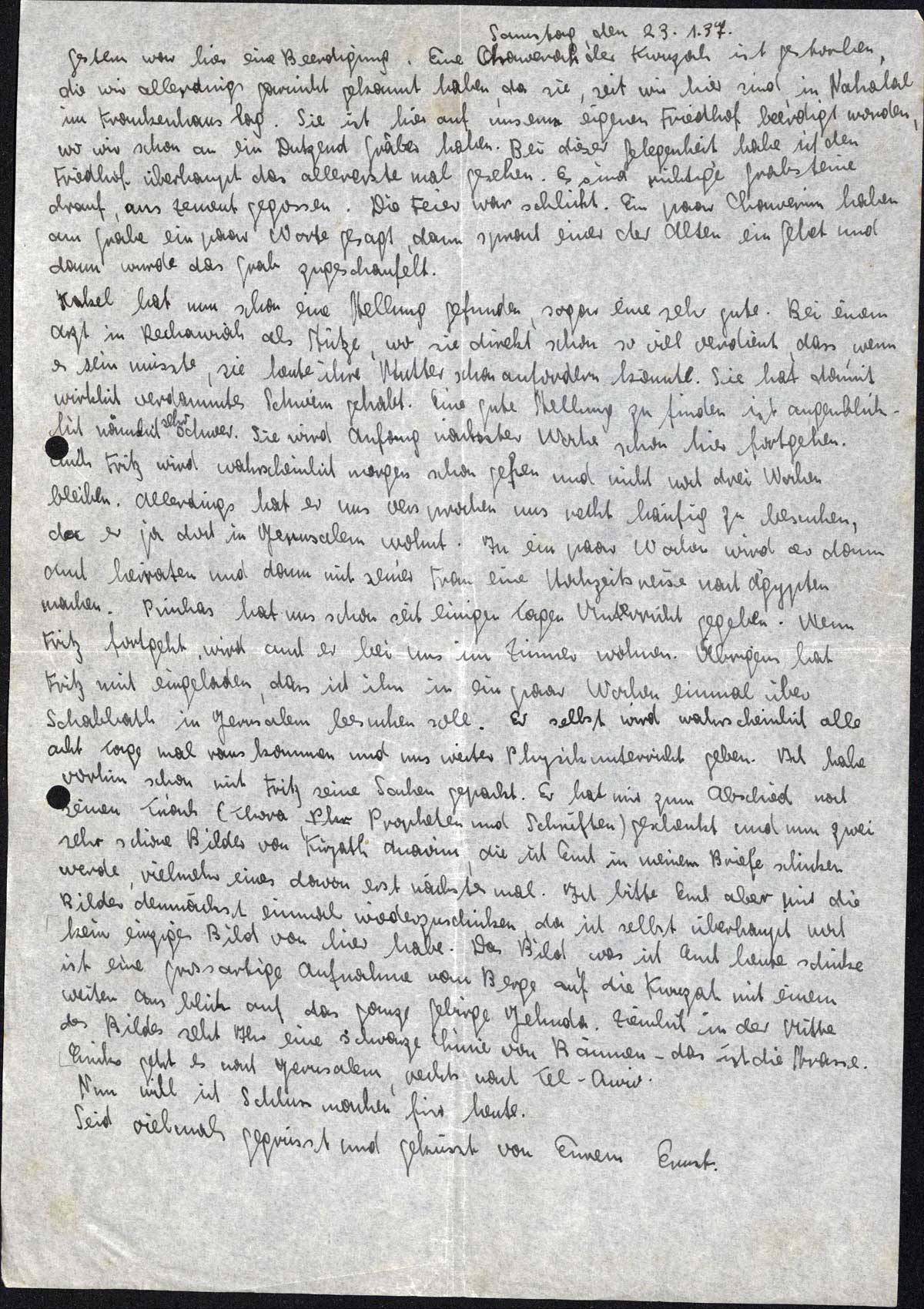 Ernst Loewy an seine Eltern, 23. Januar 1937