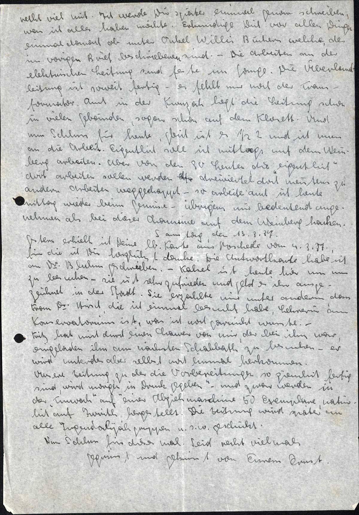 Ernst Loewy an seine Eltern, 9. März 1937