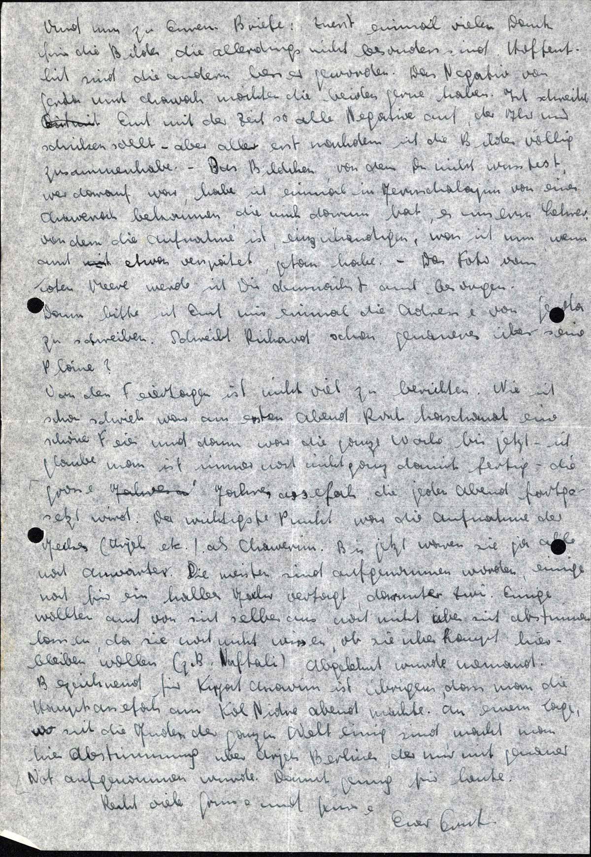 Dann bitte ich Euch mir einmal die Adresse von Gerda zu schreiben. Schreibt Richard schon genaueres über seine Pläne?