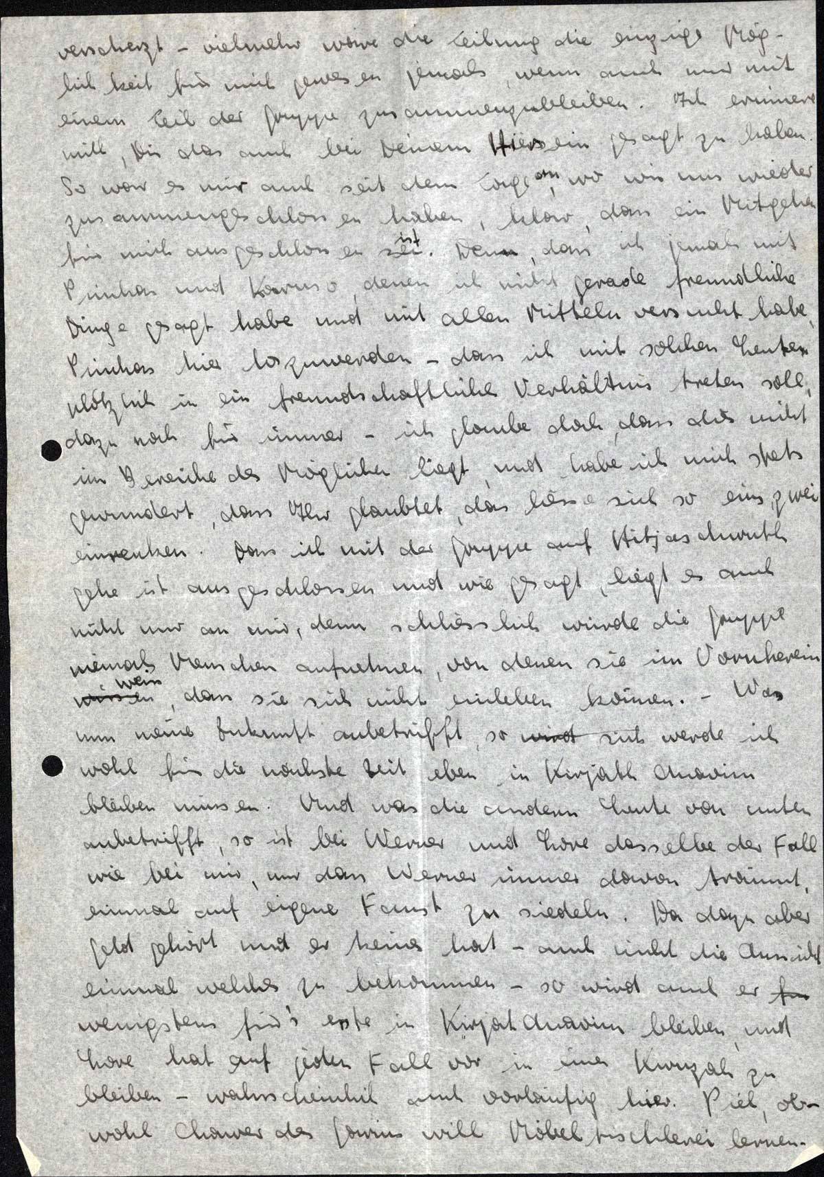 Mit Ausnahme von 10. M habe ich in dieser Woche keinerlei Post von Euch erhalten - da ich nicht annehme, dass Ihr nicht geschrieben habt, müsste demzufolge also ein Brief verlorengegangen sein. Bevor ich Euren Brief von der vorigen Woche beantworte, habe ich Euch einiges von hier zu berichten. Höchst wichtige Dinge wieder einmal, Dinge, die Euch vielleicht enttäuschen werden, an denen aber nichts zu ändern ist.