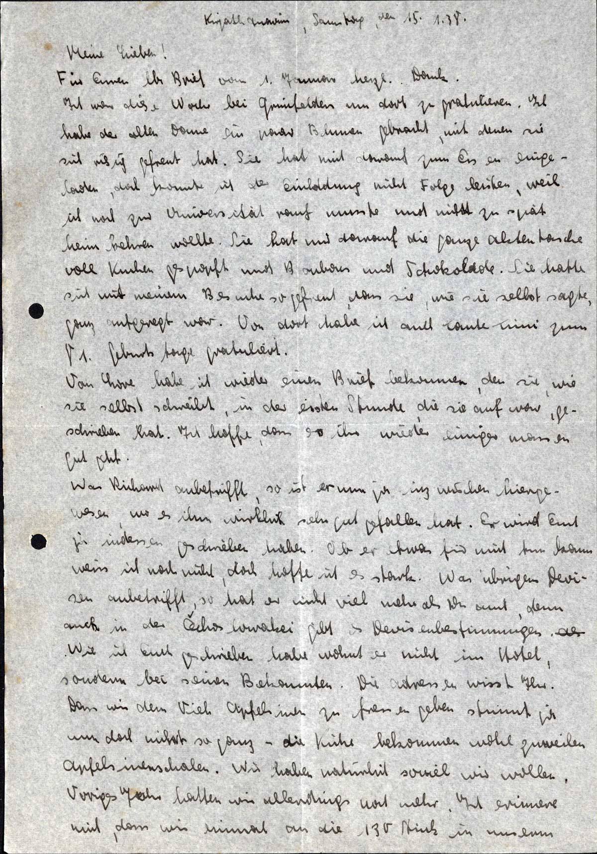 Ernst Loewy an seine Eltern, 15. Januar 1938