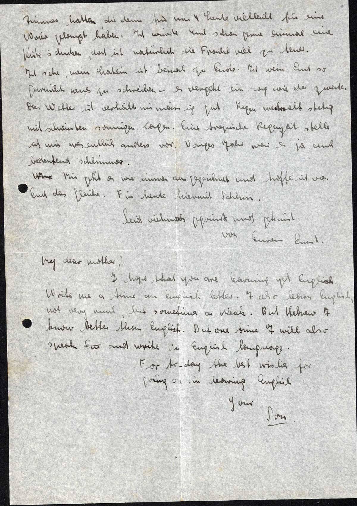 I hope that you are learning yet English. Write me a time an English letter. I also learn English, not very much, but sometimes a Week. But Hebrew I know better than English. But one time I will also speak and write in English language.