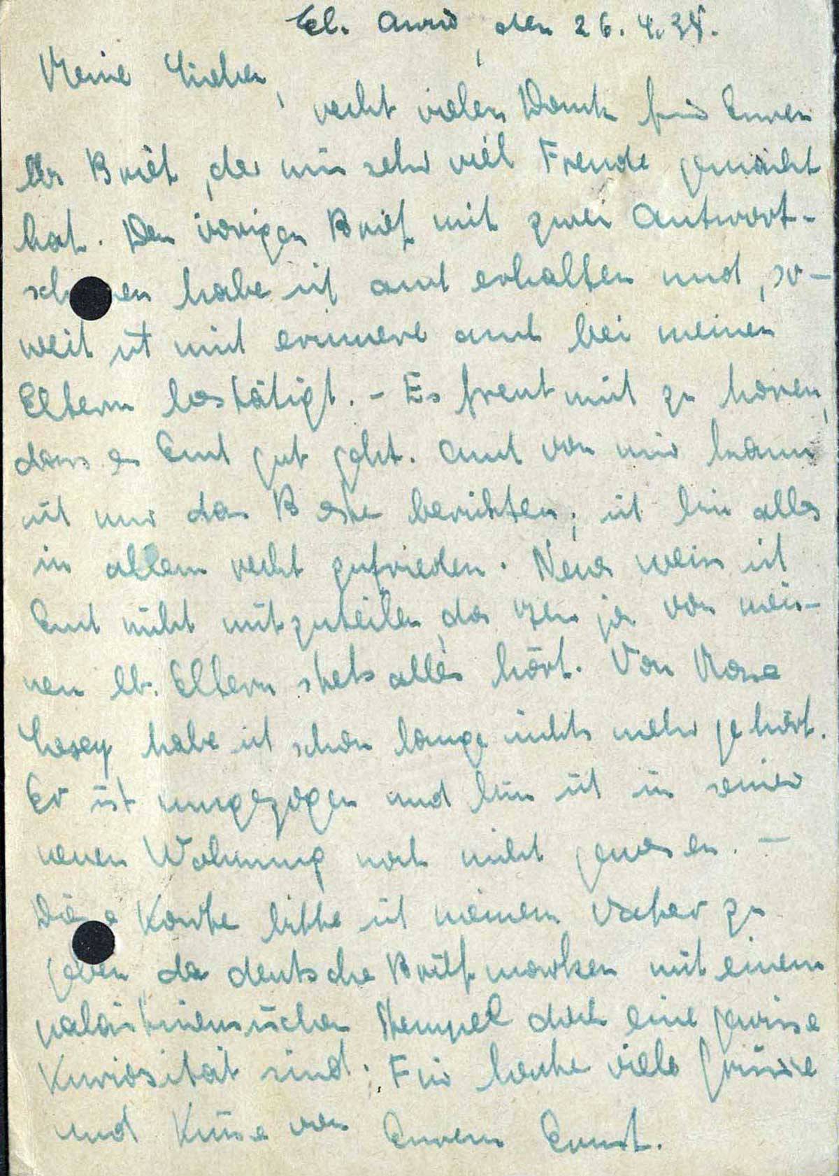 Ernst Loewy an die Geschwister Cohen, 26. April 1938
