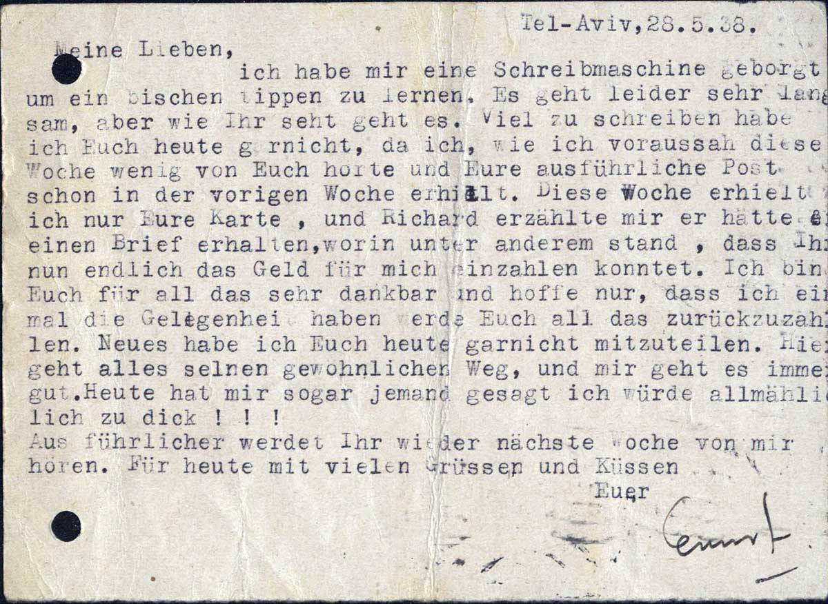 Ernst Loewy an seine Eltern, 28. Mai 1938