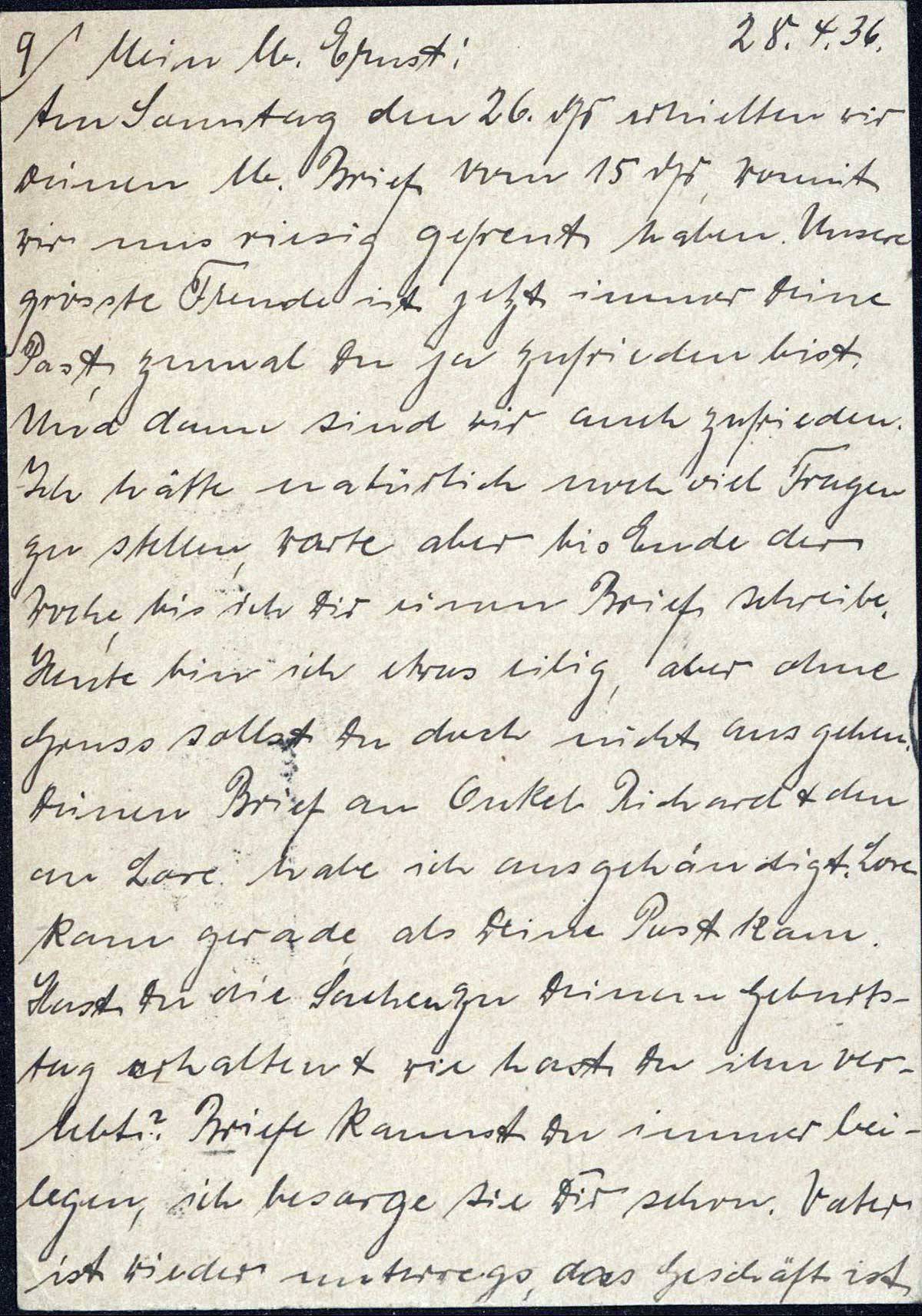 Erna Loewy an Sohn Ernst, 28. April 1936