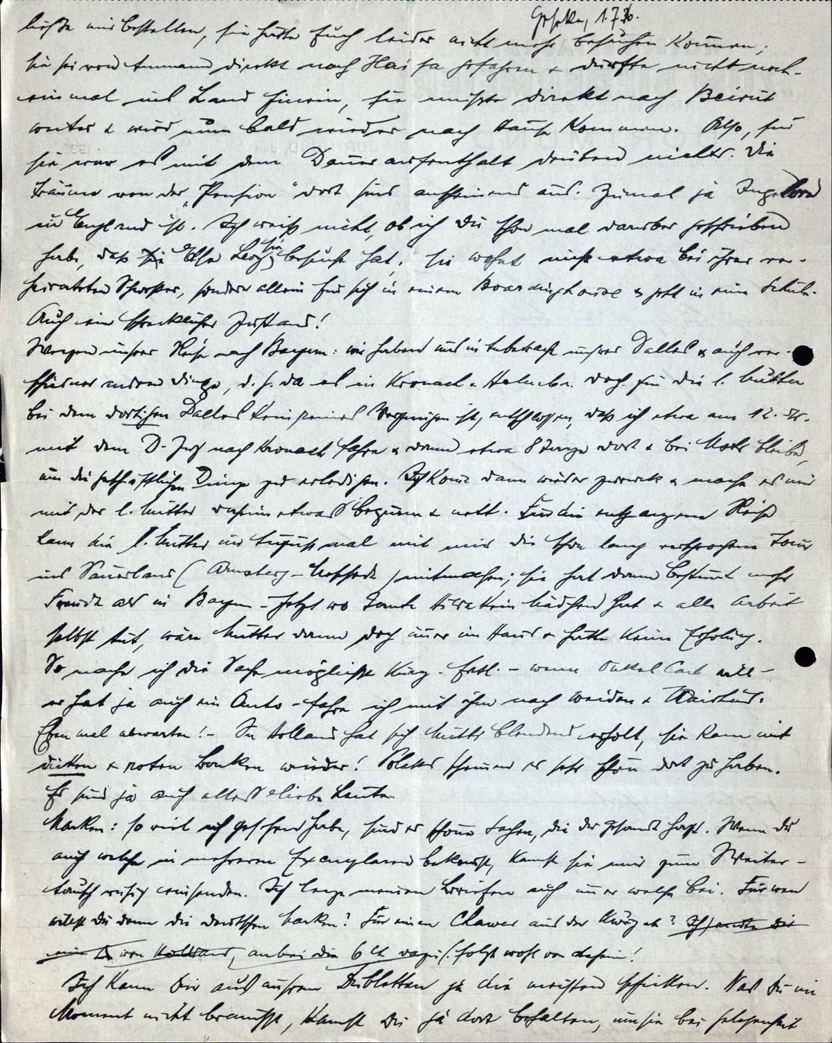 Sonntag Nachm. hörten wir in der Z.O.G. eine [..]. 2 Vorträge ( & die dazugehörigen geschwollenen Reden von Berthold) 1) von Otto Reiß, Gärtnergehilfe in Köln über Jüd. Jugendarbeit i. d. Galuth, 2) Dr. med. Kanowitz aus Tel-Aviv über Jugend b. Aufbau von Erez. Beide Vorträge sehr gut. Dr. Kanowitz haben wir nach dem Vortrag gesprochen & ihn gebeten, Dir & Ilse beim nächsten Besuch i. K. A. (Juli/August) Grüße zu bestellen. Er sprach sehr zuversichtlich, man möchte sich keine Sorgen machen & auch jetzt ginge wieder eine Jugendalijahgruppe hinüber. - Frau [..], Cleve, (weißt Du, von dem Kunden Cosman) war auch da. Ihr Mann ist z. Z. in [..], wo die Tochter eine Wäscherei hat. - Hr. Hompertz [..], Esters Vater) sagte mir, Frau Friedberg