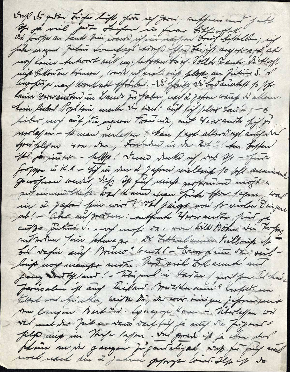 schlechter dran; sie hat weder Bekannte noch Verwandte dort. - Nur den Kopf hoch halten & immer guten Mut! Was soll eigentlich mit Ilse sein? Was für Grüße? Wir wissen von nichts & hat sich Frau Werth. natürlich aufgeregt. Mal abwarten bis Lore kommt; wer weiß, was das wieder für'n Quatsch & Tratsch ist! - Man hat ja schon mal erzählt, Ilse hätte an den [..] geschrieben, sie würde jedem dringend abraten, nach Erez zu gehn! Natürlich war kein Wort davon dran!