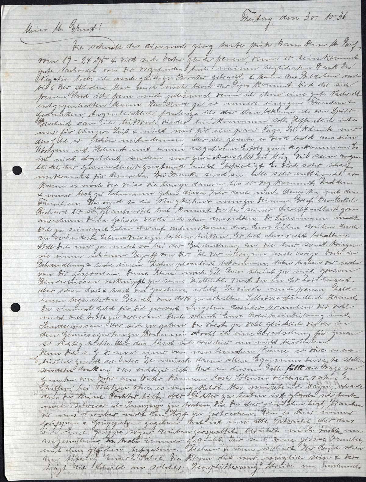 Richard und Erna Loewy an Sohn Ernst, 30. Oktober 1936