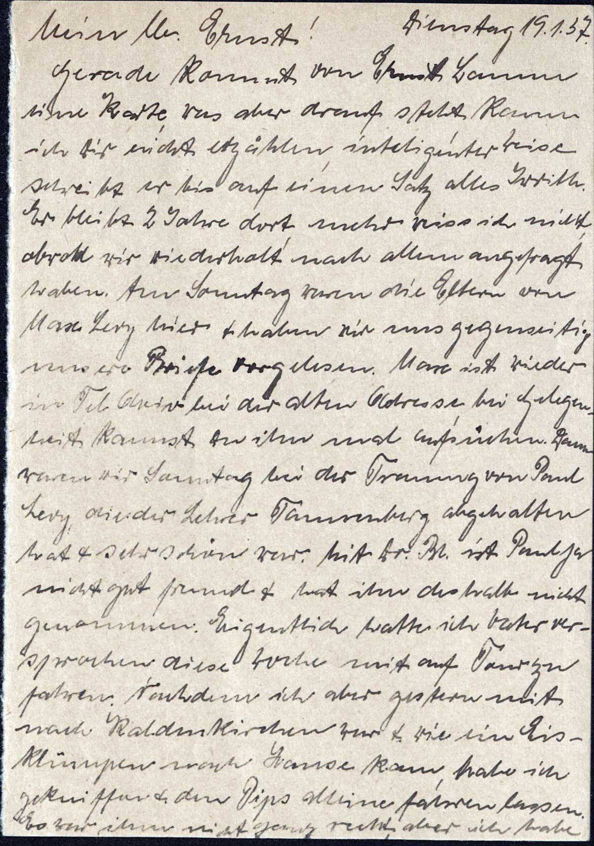 Erna Loewy an Sohn Ernst, 19. Januar 1937
