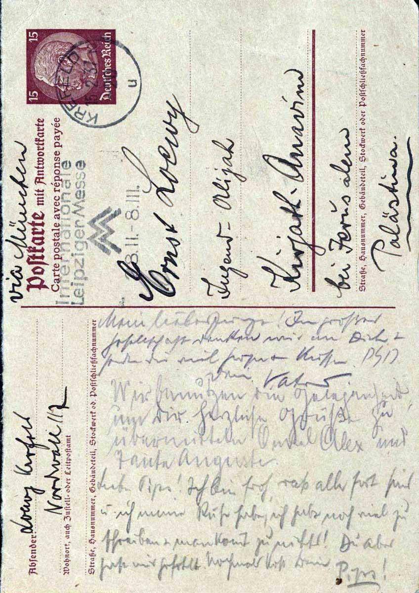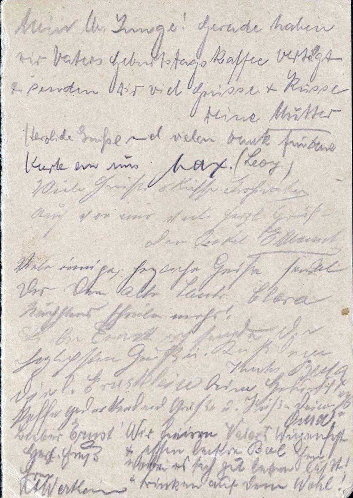 Mein lb. Junge! Gerade haben wir Vaters Geburtstagskaffee vertilgt & senden Dir viel Grüsse & Küsse