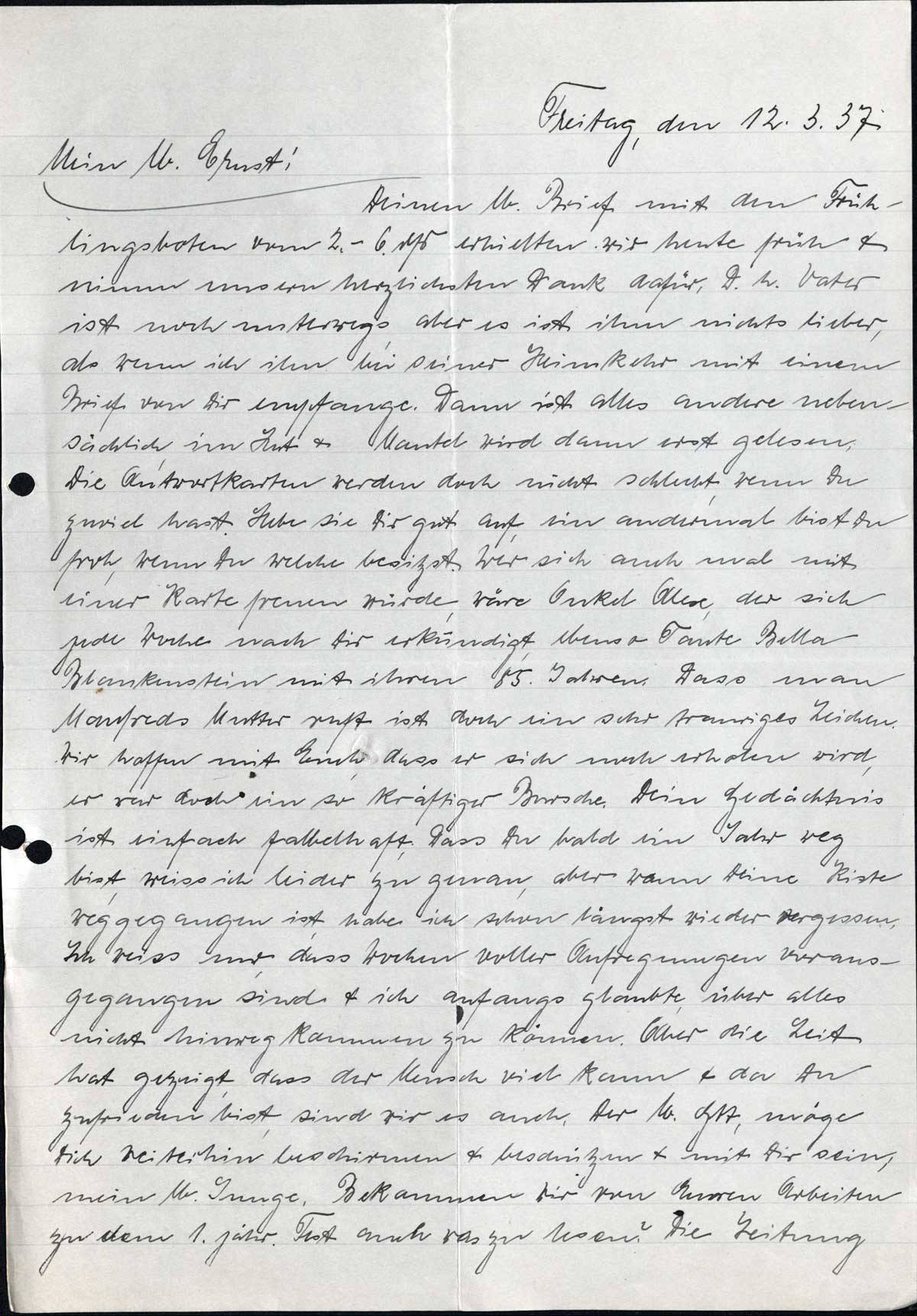 Richard und Erna Loewy an Sohn Ernst, 12. März 1937