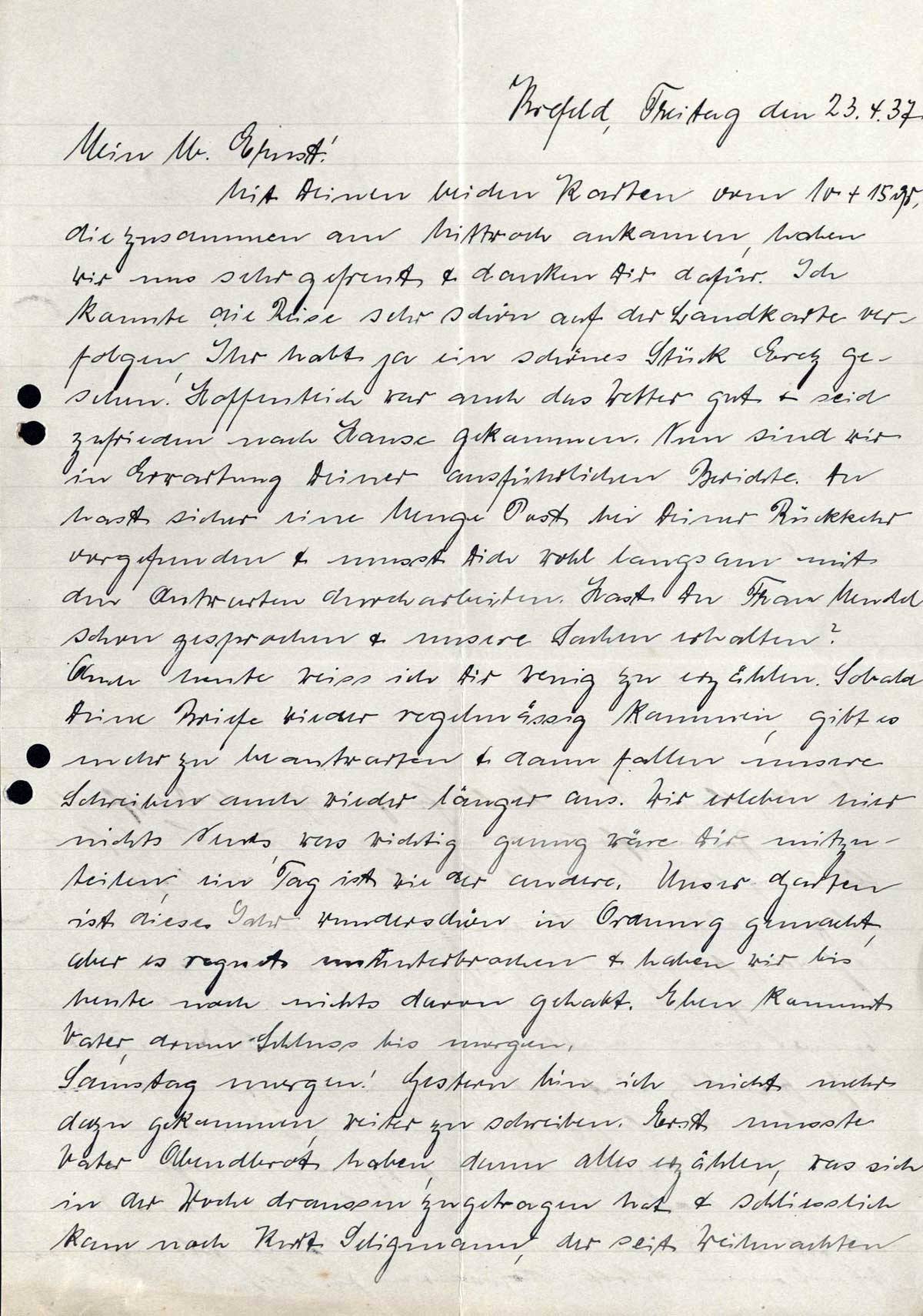 Richard und Erna Loewy an Sohn Ernst, 23. April 1937