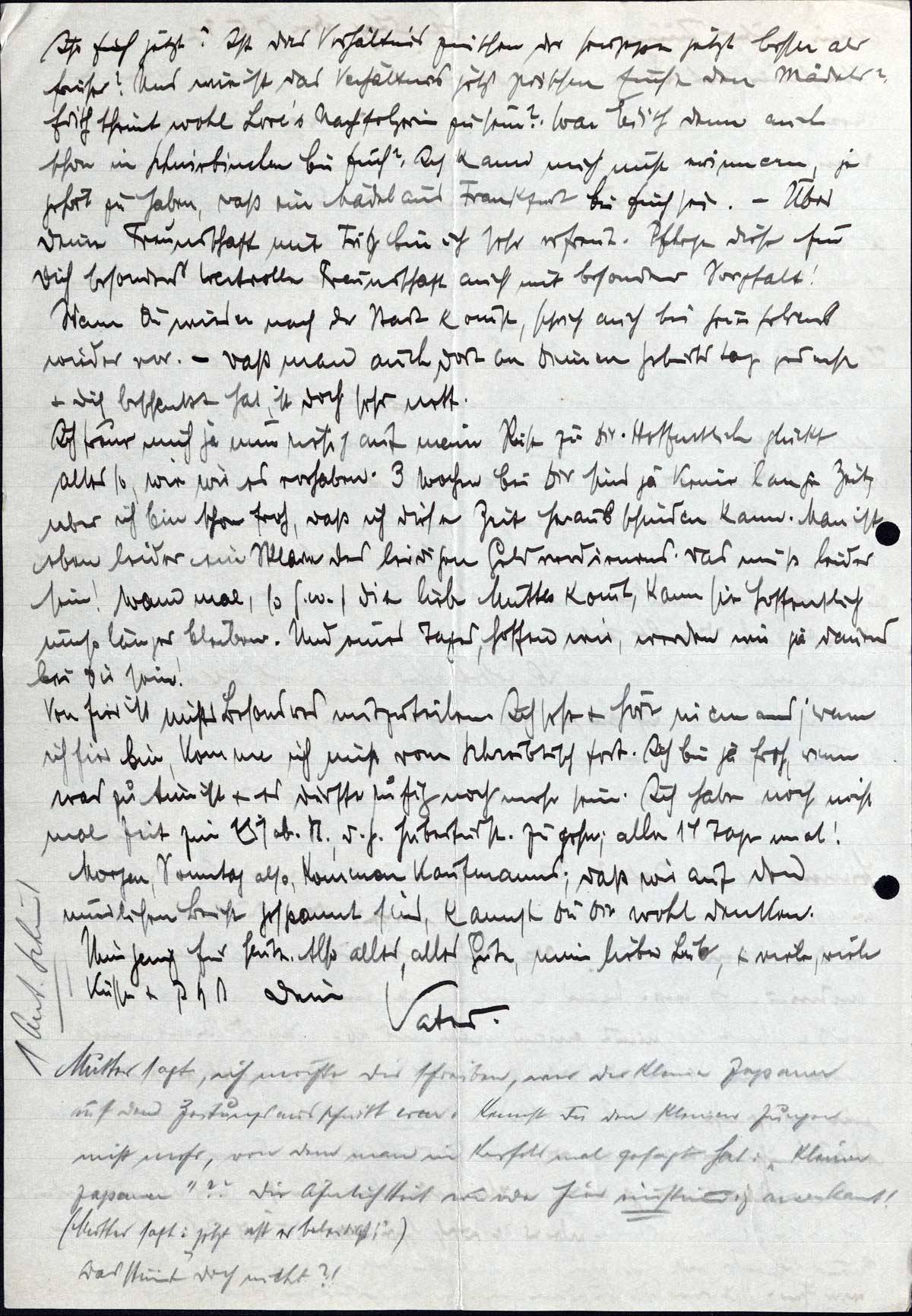 Morgen, Sonntag also, kommen Kaufmanns; daß wir auf den mündlichen Bericht gespannt sind, kannst Du Dir wohl denken.