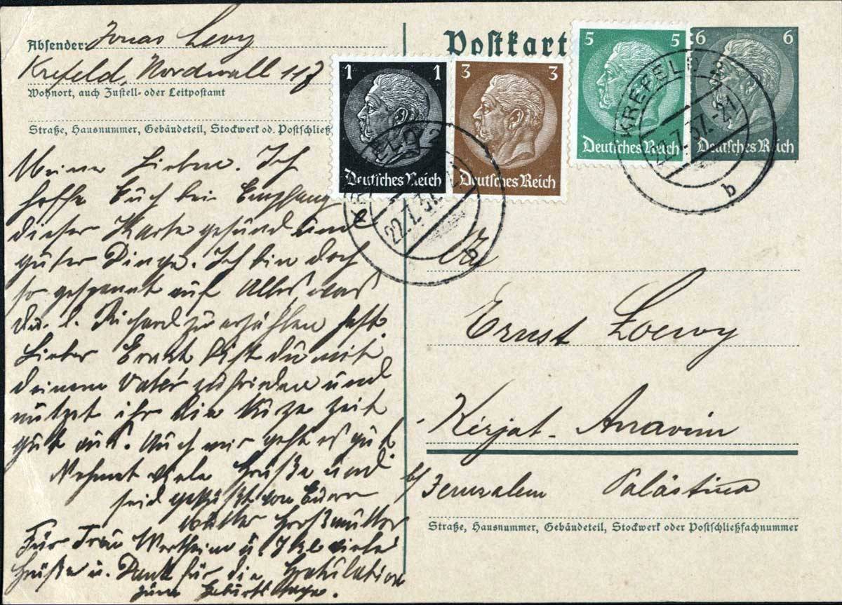 Jonas Levy an Sohn und Enkel Richard und Ernst Loewy, 22. Juli 1937