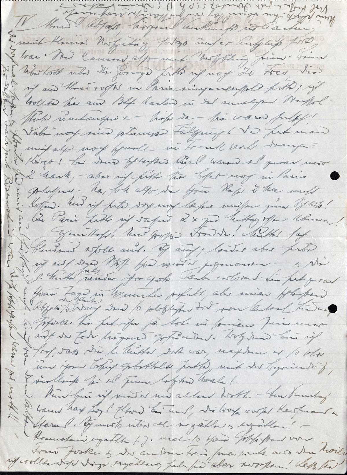 Nun bin ich wieder im alten Trott. - Am Sonntag waren Max Levys Eltern bei uns, die Woche vorher Kaufmanns & Sterns. Ich muß überall erzählen & erzählen! - Rosenstein erzählte s. Z. mal so schöne Geschichten von Frau Joske & der andren Frau, ([..]) ich wollte diese Dinge erzählen, habe sie aber vergessen! Laß sie