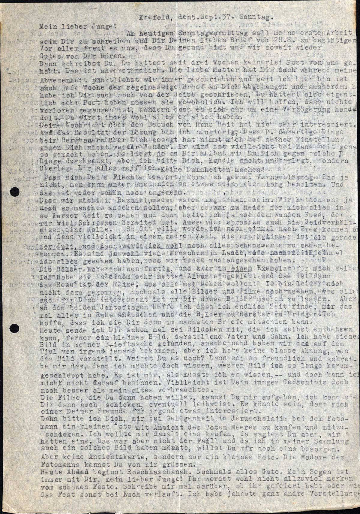 Richard Loewy an Sohn Ernst, 5. September 1937
