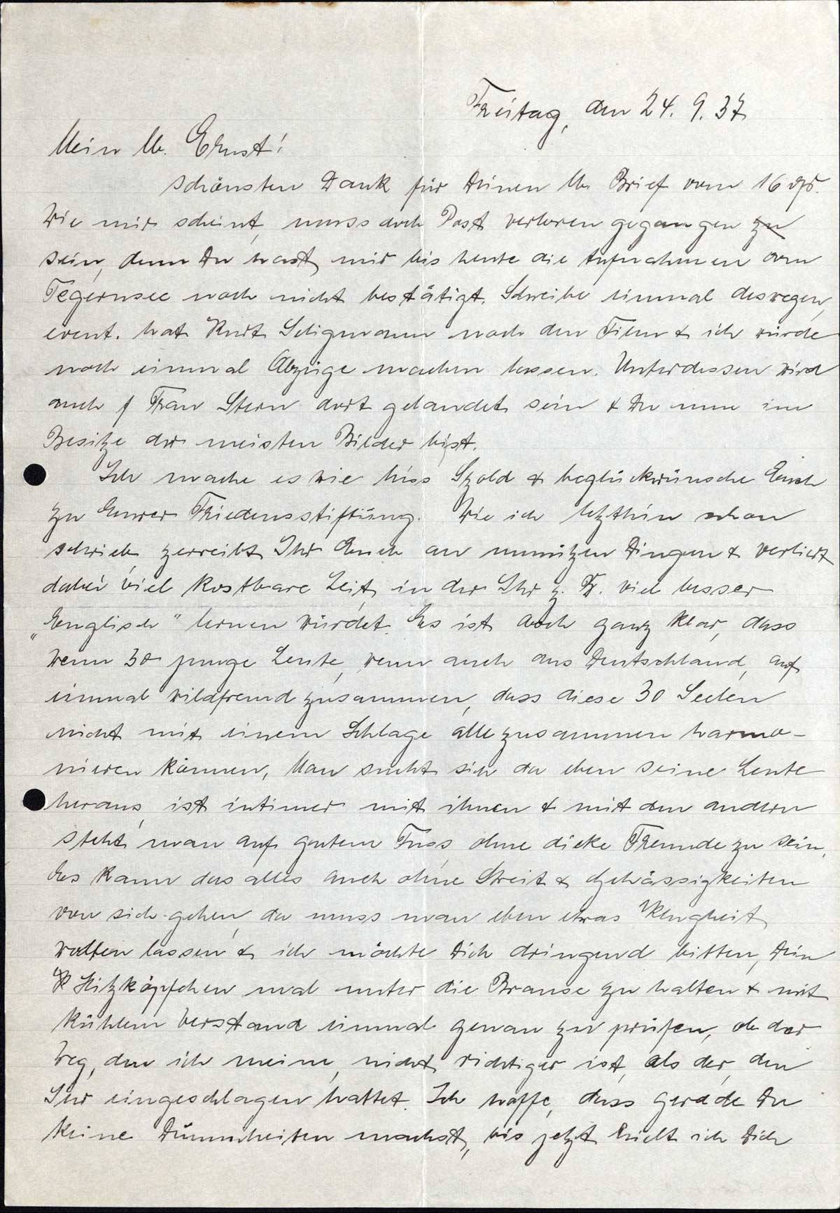Erna Loewy an Sohn Ernst, 24. September 1937