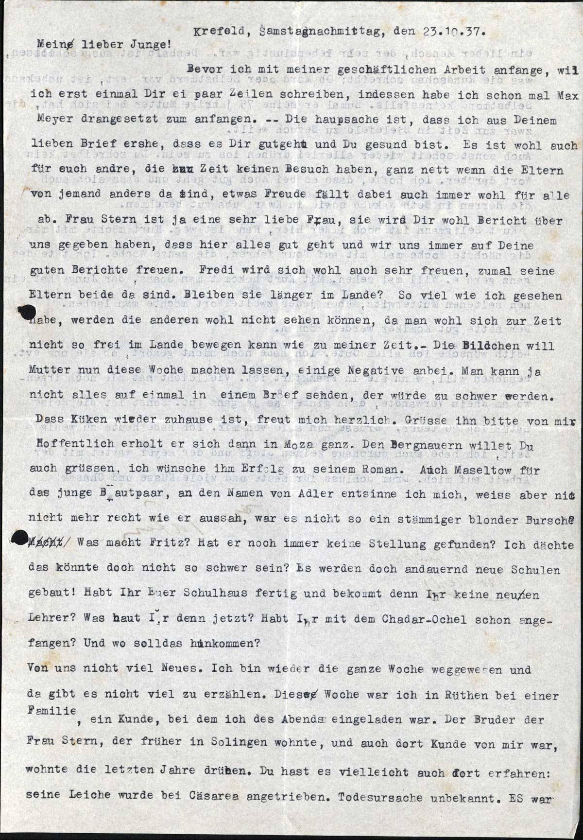 Richard Loewy an Sohn Ernst, 23. Oktober 1937