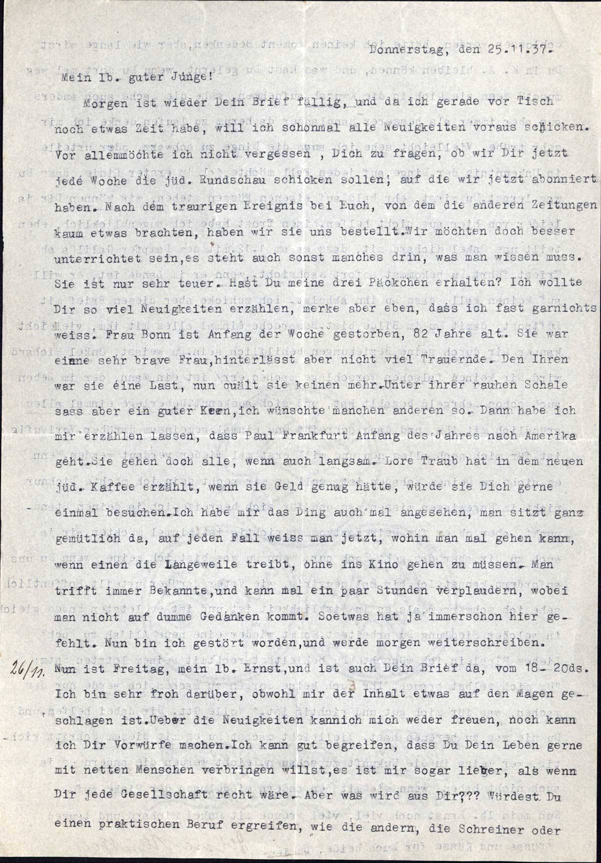 Erna Loewy an Sohn Ernst, 25. November 1937