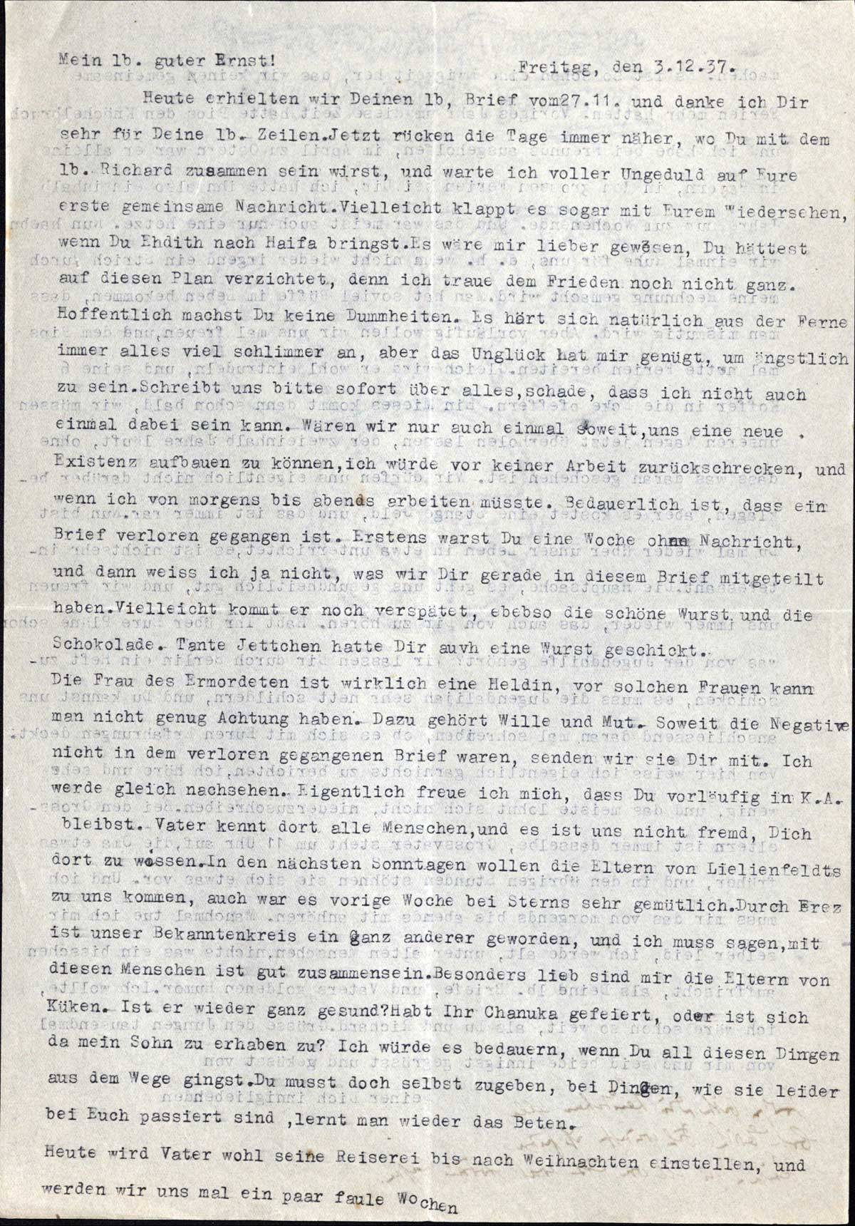 Erna Loewy an Sohn Ernst, 3. Dezember 1937
