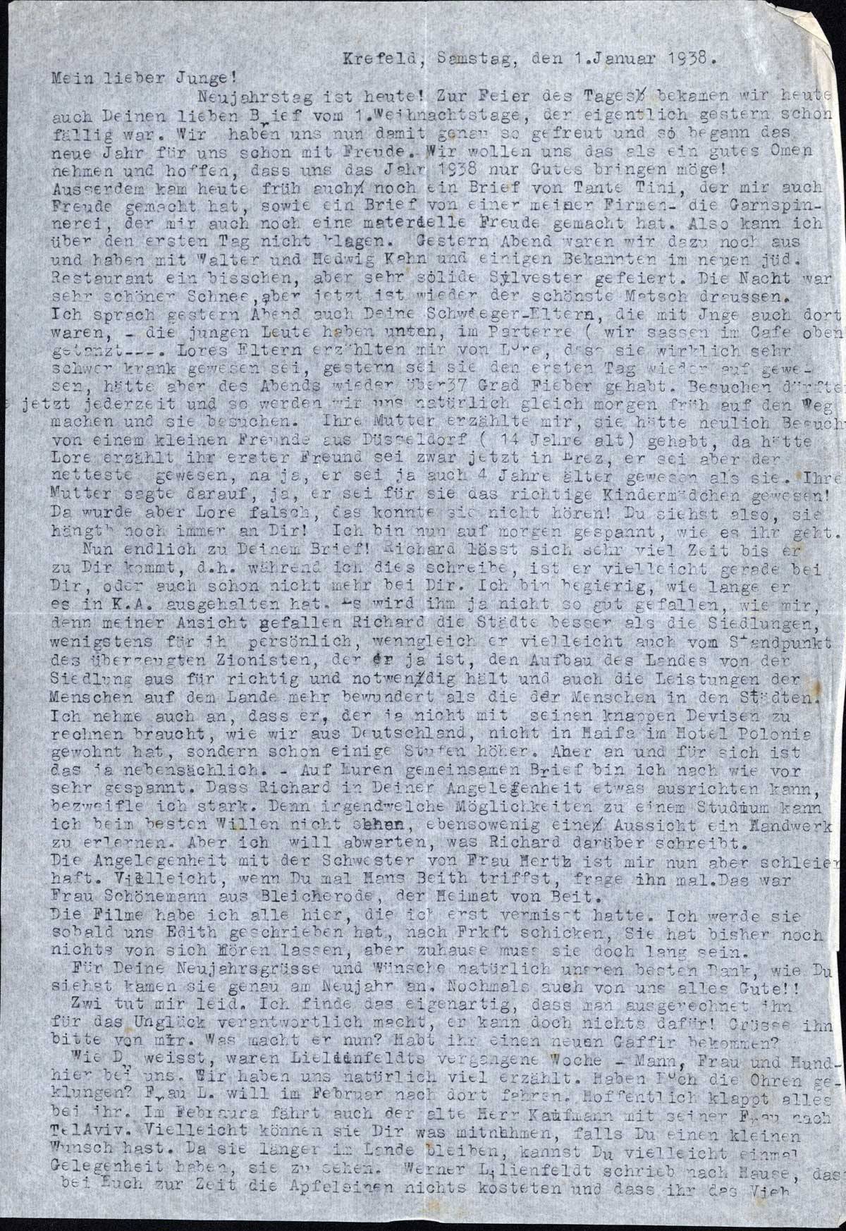 Richard und Erna Loewy an Sohn Ernst, 1. Januar 1938