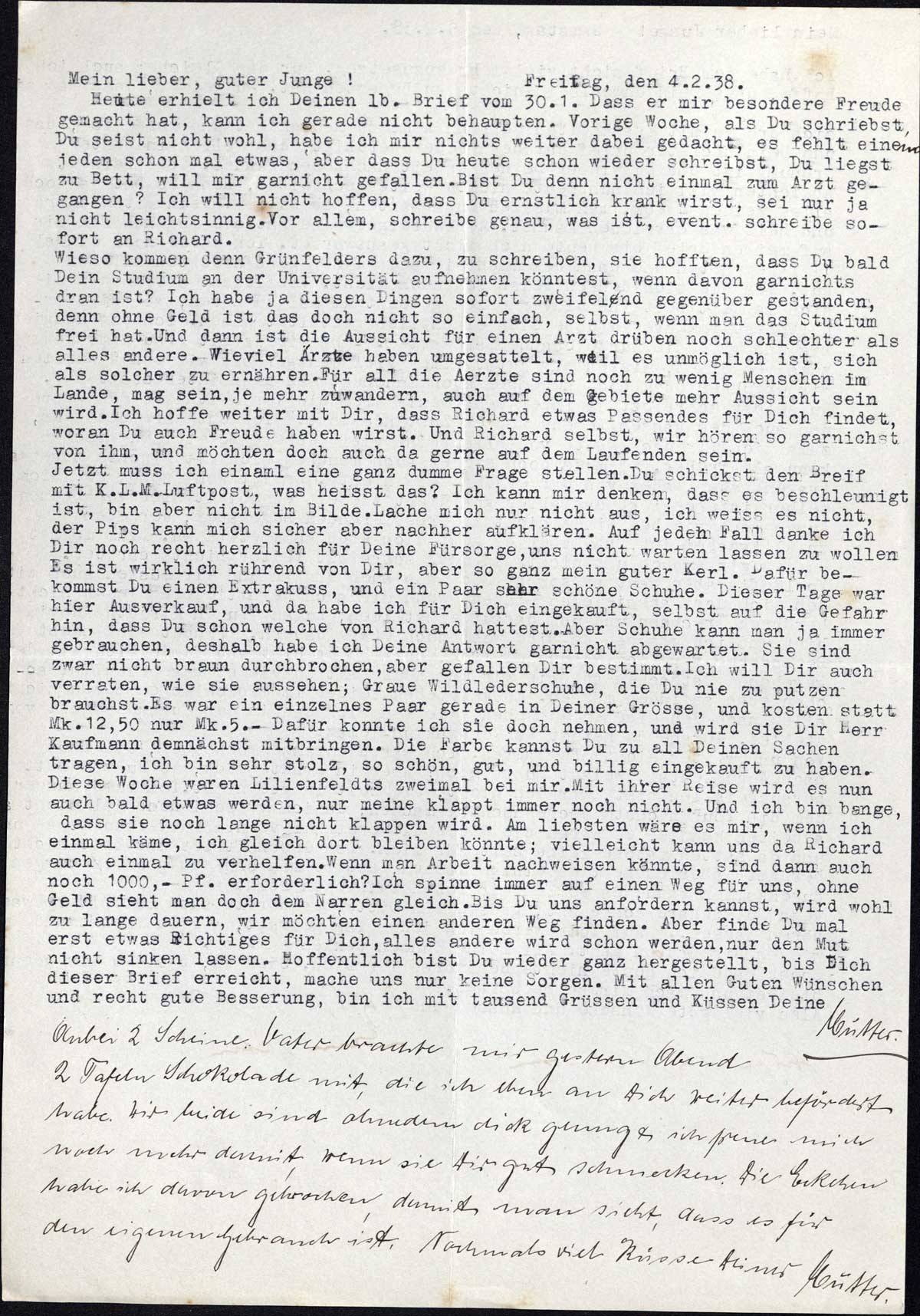 Richard und Erna Loewy an Sohn Ernst, 4. Februar 1938