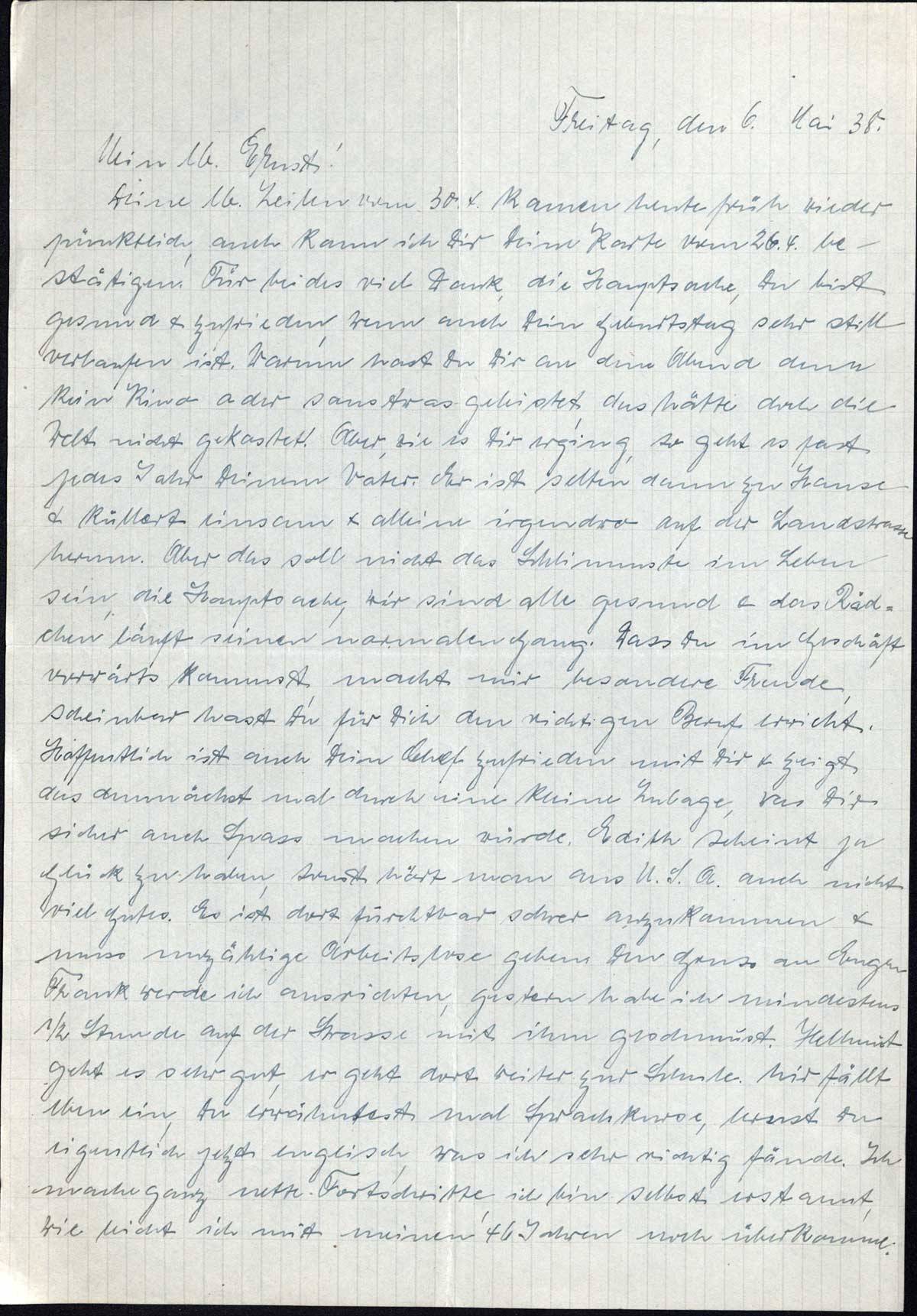 Richard und Erna Loewy an Sohn Ernst, 6. Mai 1938