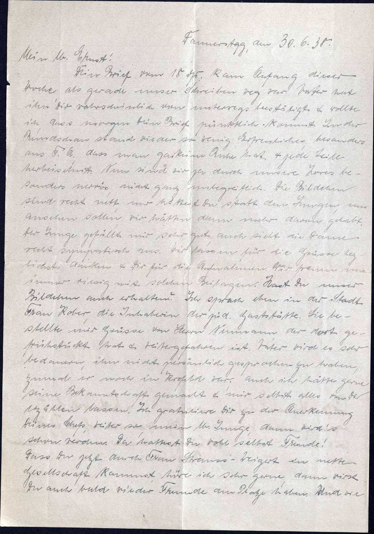 Richard und Erna Loewy an Sohn Ernst, 30. Juni 1938