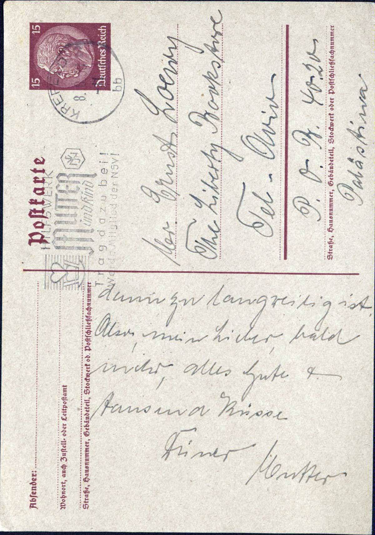 Erna Loewy an Sohn Ernst, 8. August 1938