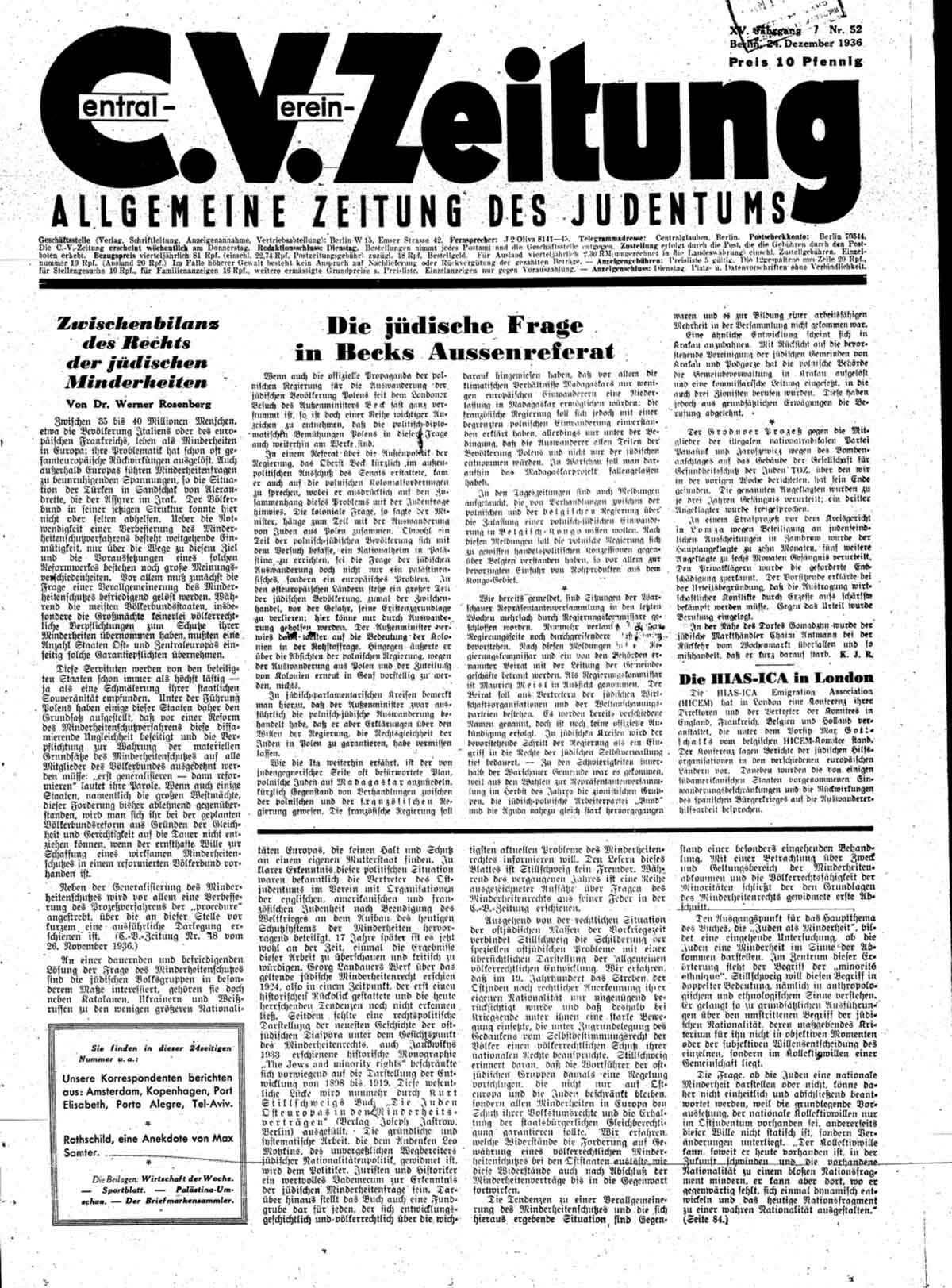 Am 21. Dezember verbot das Geheime Staatspolizeiamt sind mit sofortiger Wirkung sämtliche als politisch eingestuften jüdischen Veranstaltungen und Versammlungen - ausgenommen waren lediglich Versammlungen rein religiöser und kultureller Art. Dieses bis zum 1. Februar 1937 geltende Verbot wurde damit begründet, so weitere Publikationen über Anordnungen des Amtes in der „Judenfrage“ in der Auslandspresse zu verhindern.