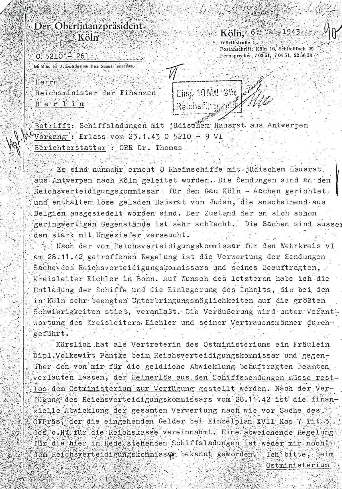 Der Oberfinanzpräsident Köln, 6. Mai 1943