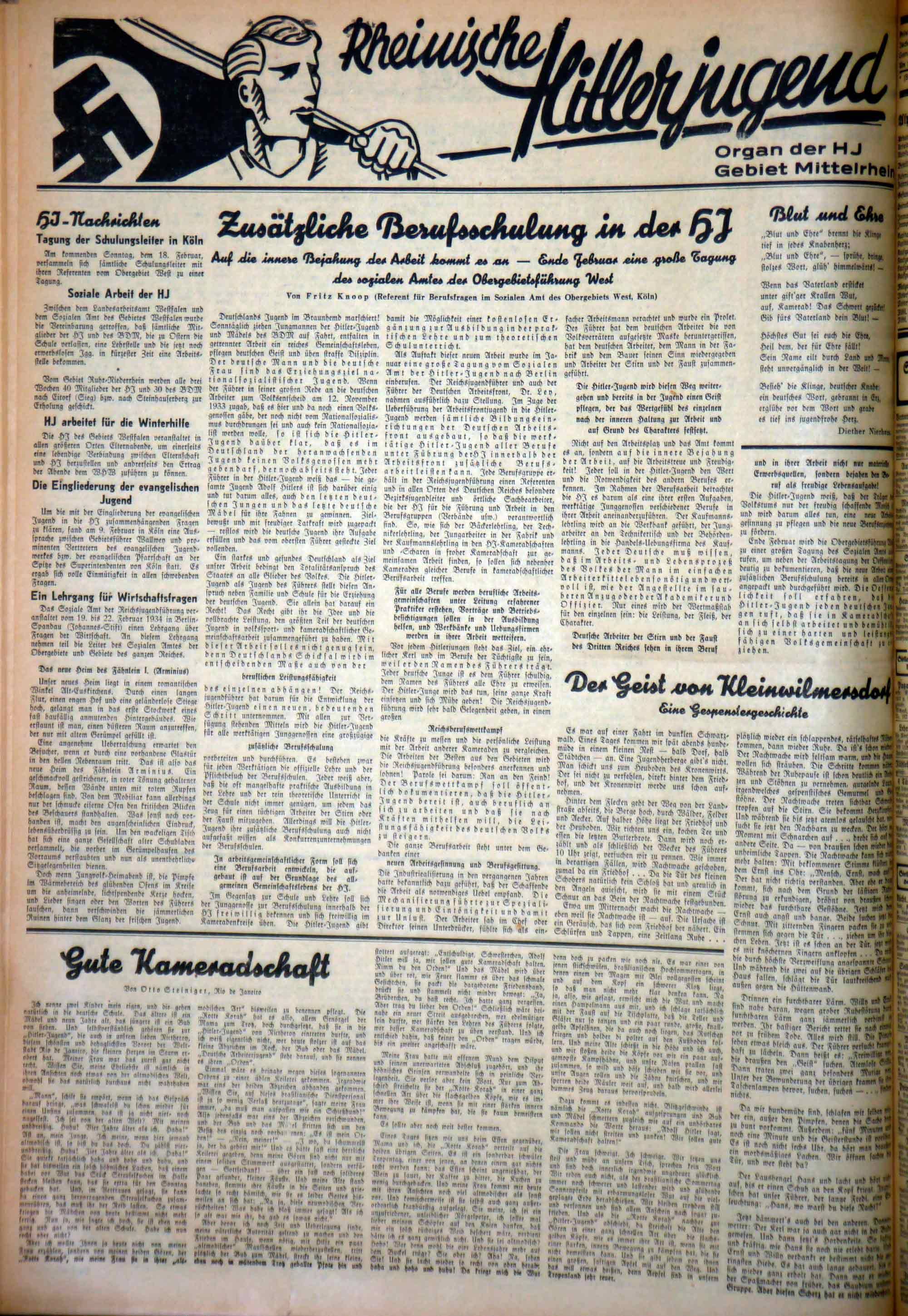 Zwischen dem Landesarbeitsamt Westfalen und dem Sozialen Amt des Gebietes Westfalen wird im Februar 1934 eine Vereinbarung getroffen, derzufolge alle Mitglieder von HJ und BDM, die zu Ostern die Schule verlassen, eine Lehrstelle erhalten sollen. Zudem sollen alle erwerbslosen Jgg. "in kürzester Zeit" eine Arbeitsstelle bekommen.