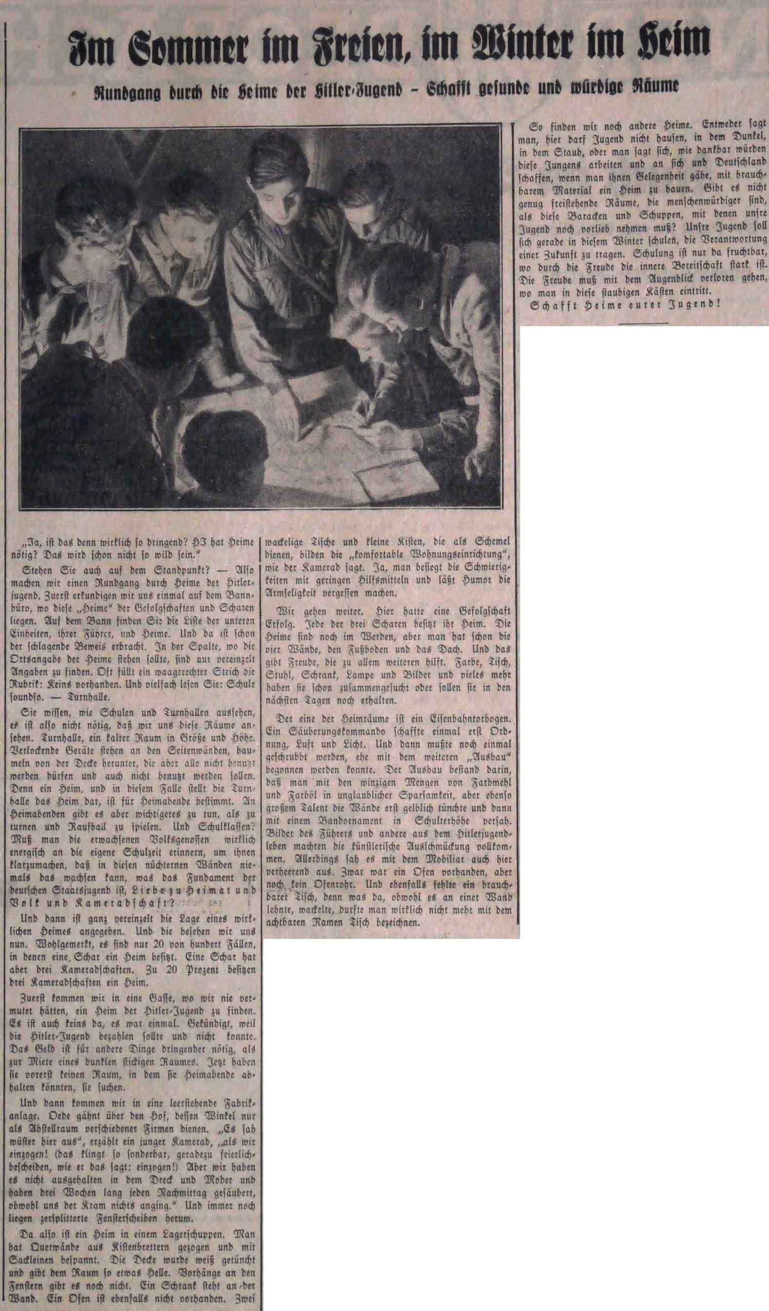 Daher ruft die HJ dazu auf, ihr bessere Heime zur Verfügung zu stellen, damit sie auch im Winter arbeiten kann.