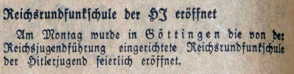 In Göttingen wird am 3. Dezember 1934 die von der Reichsjugendführung errichtete Reichsrundfunkschule eröffnet.