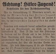 Zudem ordnet er für den 1. Januar 1935 Gemeinschaftsempfang in der Zeit von 10 bis 10.45 Uhr an, um die Neujahrsbotschaft von Reichsjugendführer Baldur von Schirach zu hören.