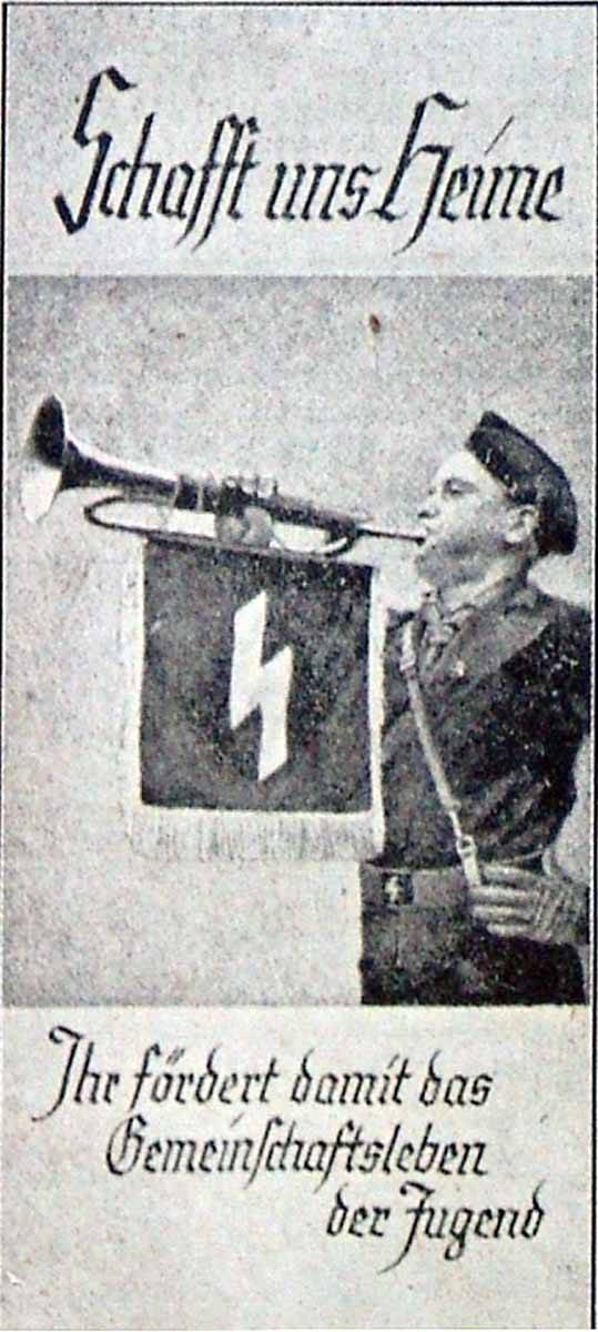 "Ihr fördert damit unser Gemeinschaftsleben der Jugend" heißt es in einer Anzeige in der Nationalzeitung vom 16. August 1934.