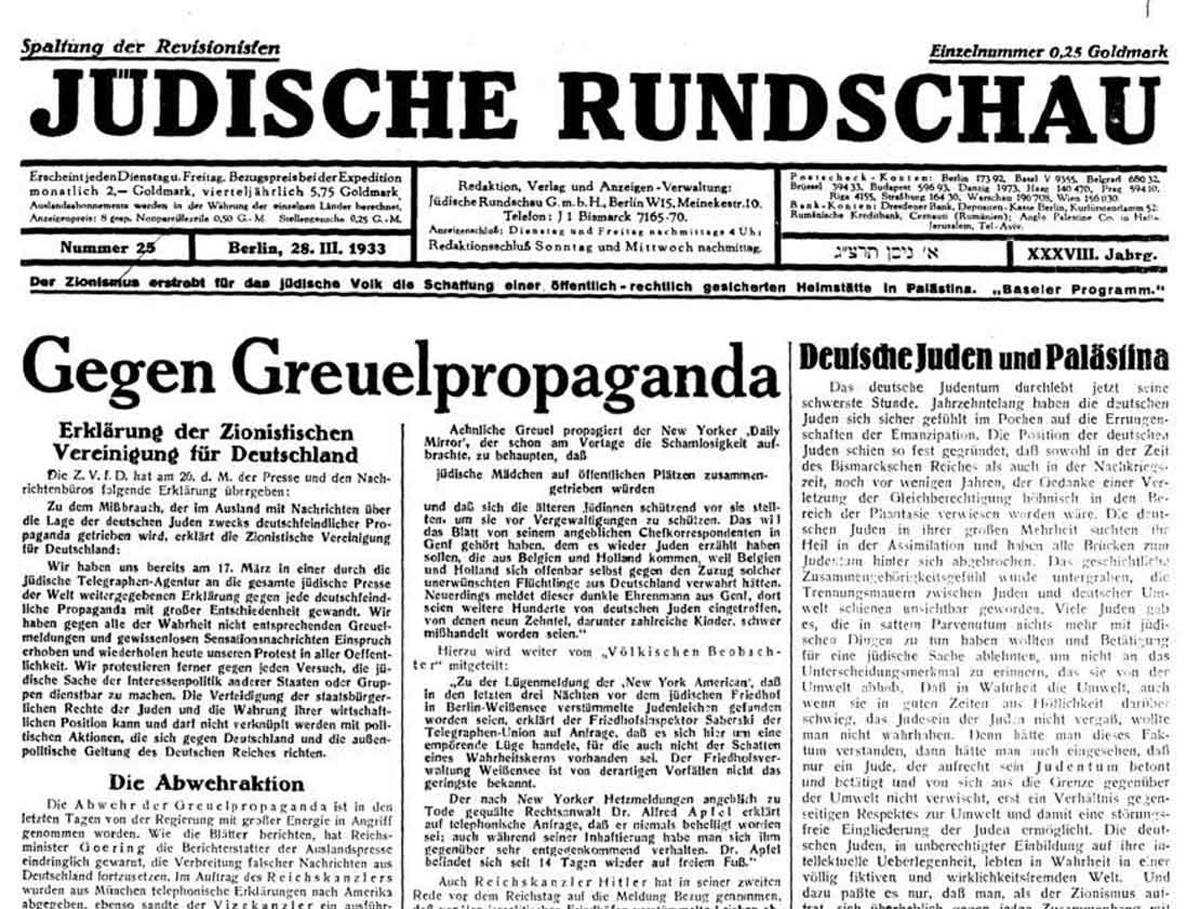 Weiteres schweres Ungemach für die jüdische Bevölkerung lag sozusagen „in der Luft“. So notierte Joseph Goebbels am 26. März in sein Tagebuch: „Wir werden gegen die Auslandshetze nur ankommen, wenn wir ihre Urheber oder doch wenigstens Nutznießer, nämlich die in Deutschland lebenden Juden, die bisher unbehelligt blieben, zu packen bekommen. Wir müssen also zu einem groß angelegten Boykott aller jüdischen Geschäfte in Deutschland schreiten. Vielleicht werden sich dann die ausländischen Juden eines Besseren besinnen, wenn es ihren Rassegenossen in Deutschland an den Kragen geht. Pg. Streicher wird zum Leiter der Aktion ernannt. Ich schreibe gleich einen Boykott-Aufruf und gebe eine kurze Erklärung für die Presse heraus, die schon wie ein Wunder wirkt.“