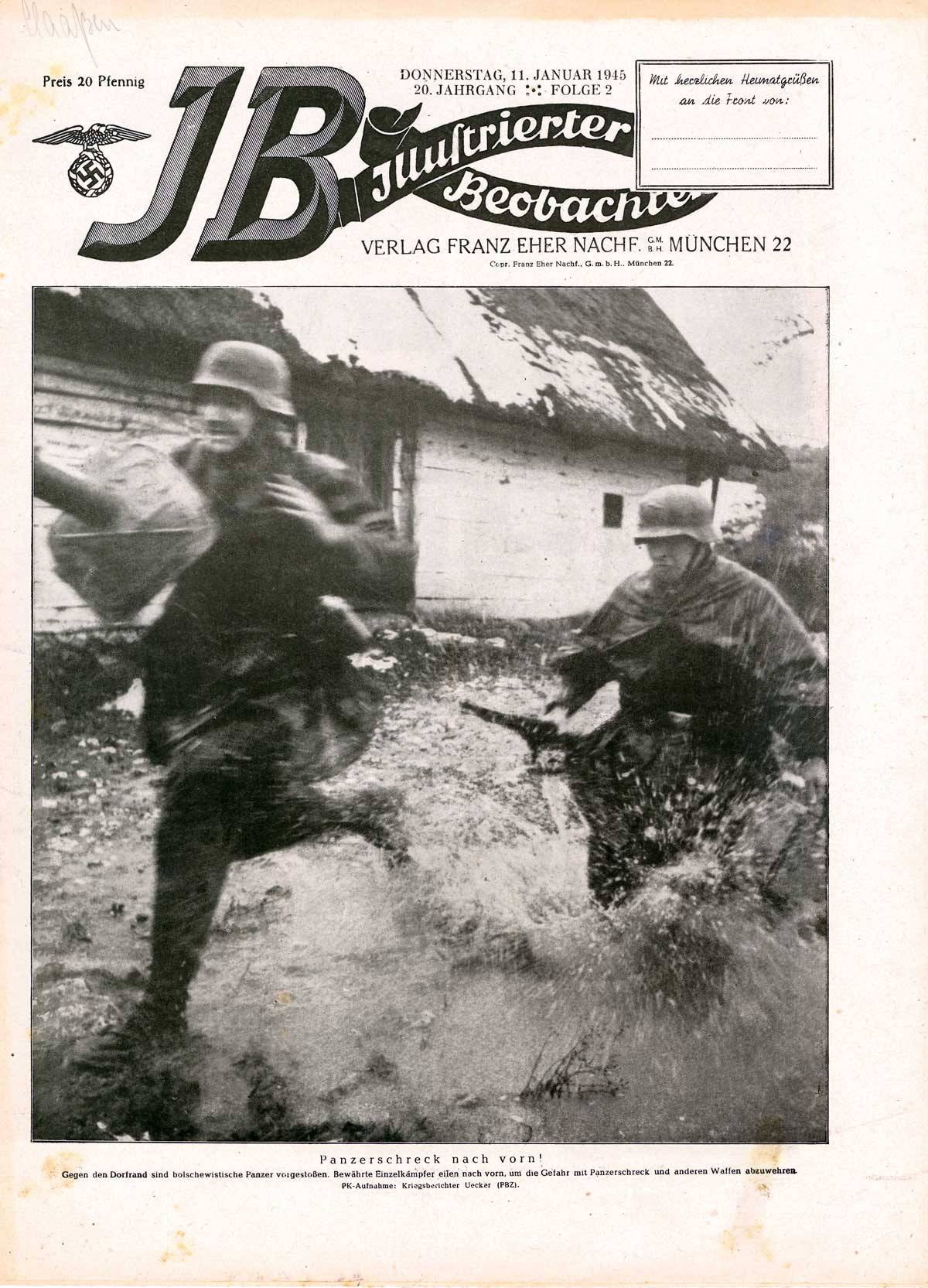 Am 30. Januar rief Hitler anlässlich der 12. Wiederkehr des Tags der NS-Machtübernahme das deutsche Volk über den Rundfunk zum entschlossenen Widerstand gegen die alliierten Streitkräfte auf und versprach erneut und unverdrossen den „Endsieg“ durch den Einsatz kriegsentscheidender „Wunderwaffen“. Im gleichen propagandistischen Tenor wurde am gleichen Tag in der noch von deutschen Truppen gehaltenen „Atlantikfestung“ La Rochelle in Frankreich der von Veit Harlan inszenierten Durchhaltefilm „Kolberg“ uraufgeführt.