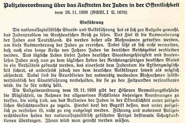 Polizeiverordnung über das Auftreten der Juden in der Öffentlichkeit vom 28. November 1938