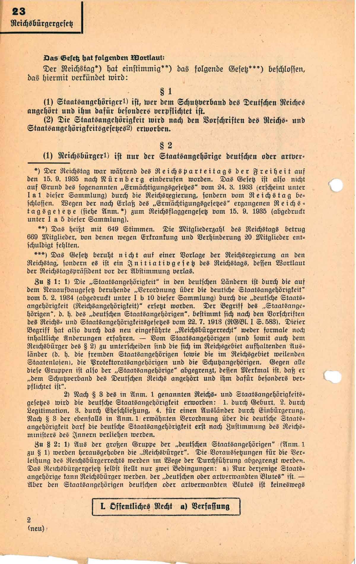 Reichsbürgergesetz vom 15. September 1935