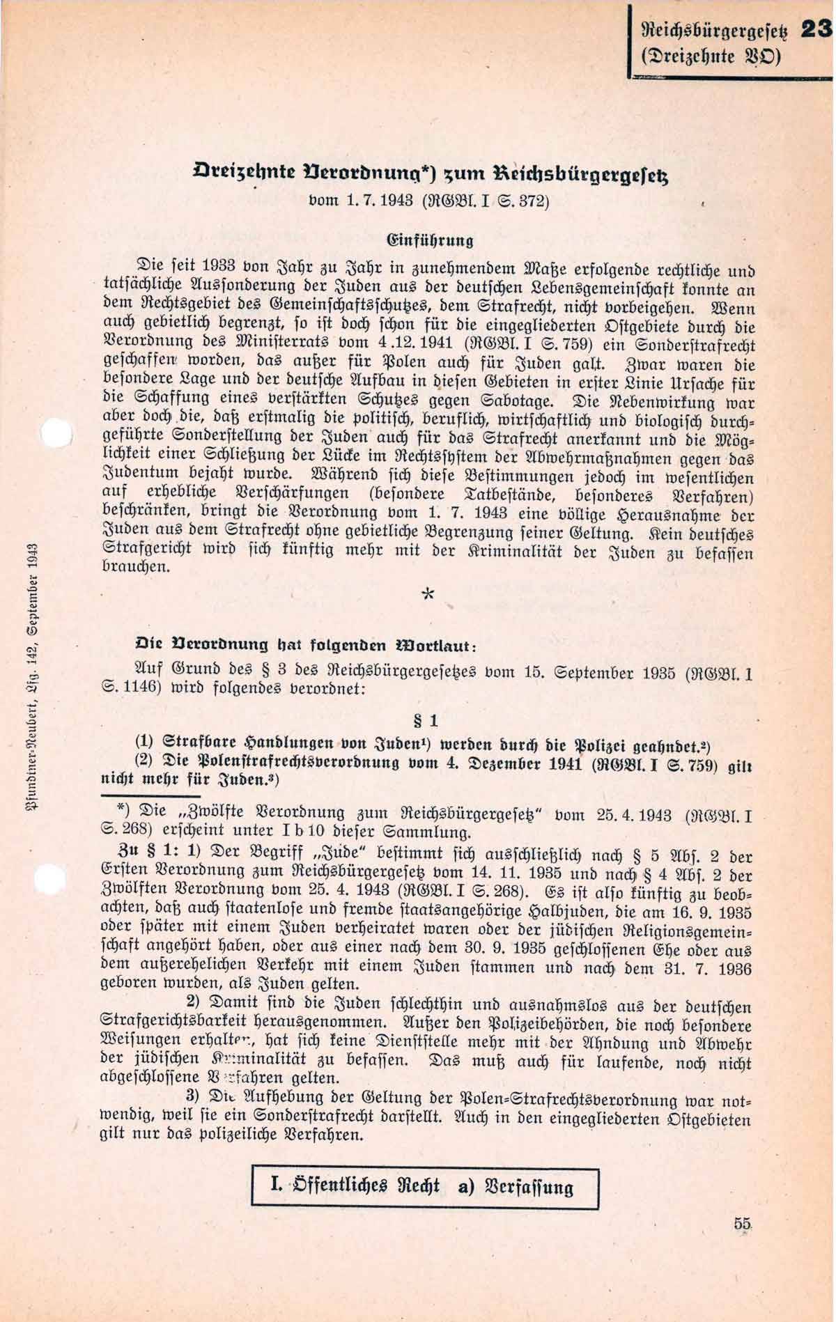 Dreizehnte Verordnung zum Reichsbürgergesetz vom 1. Juli 1943