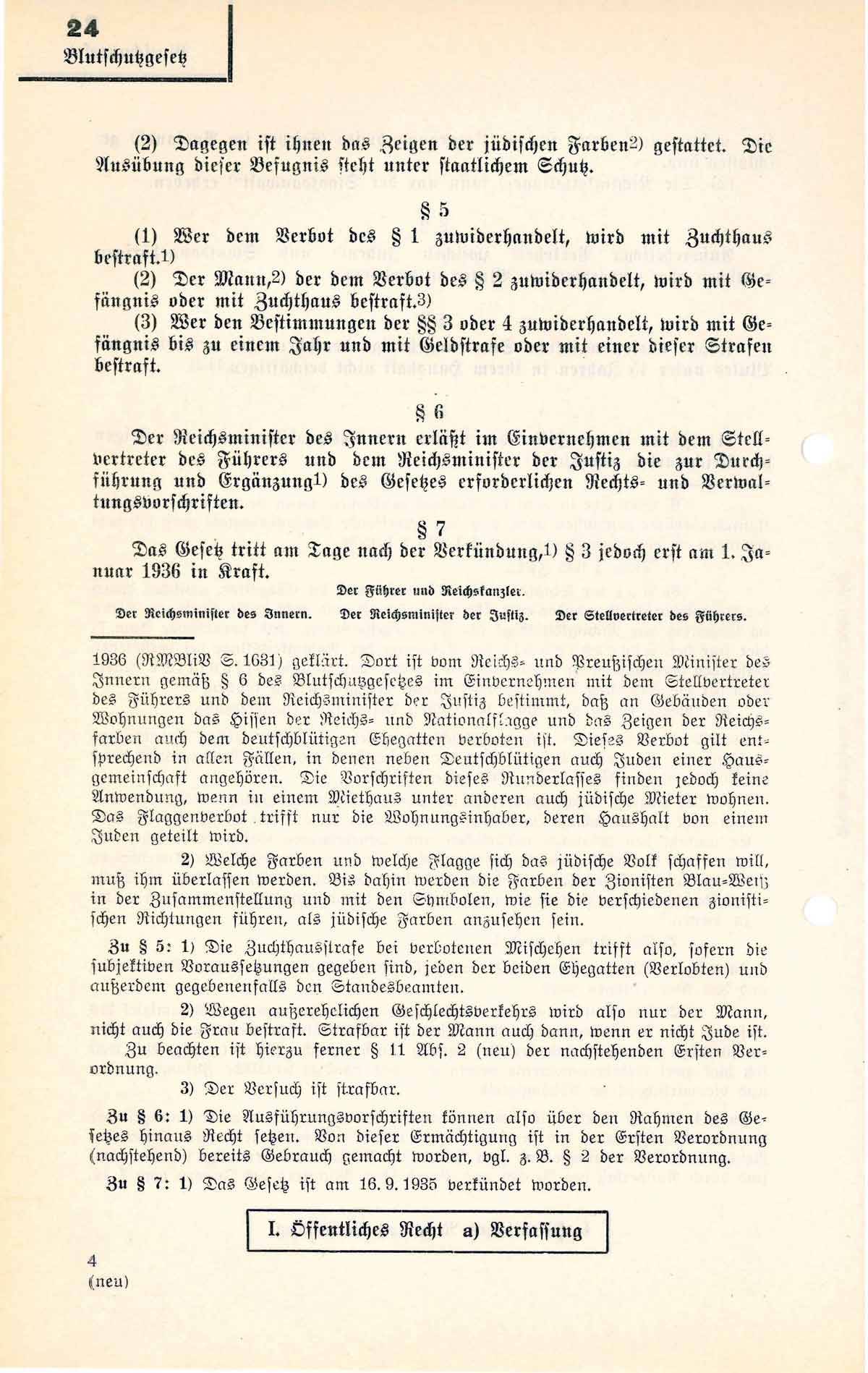 Gesetz zum Schutze des deutschen Blutes und der deutschen Ehre vom 15. September 1935