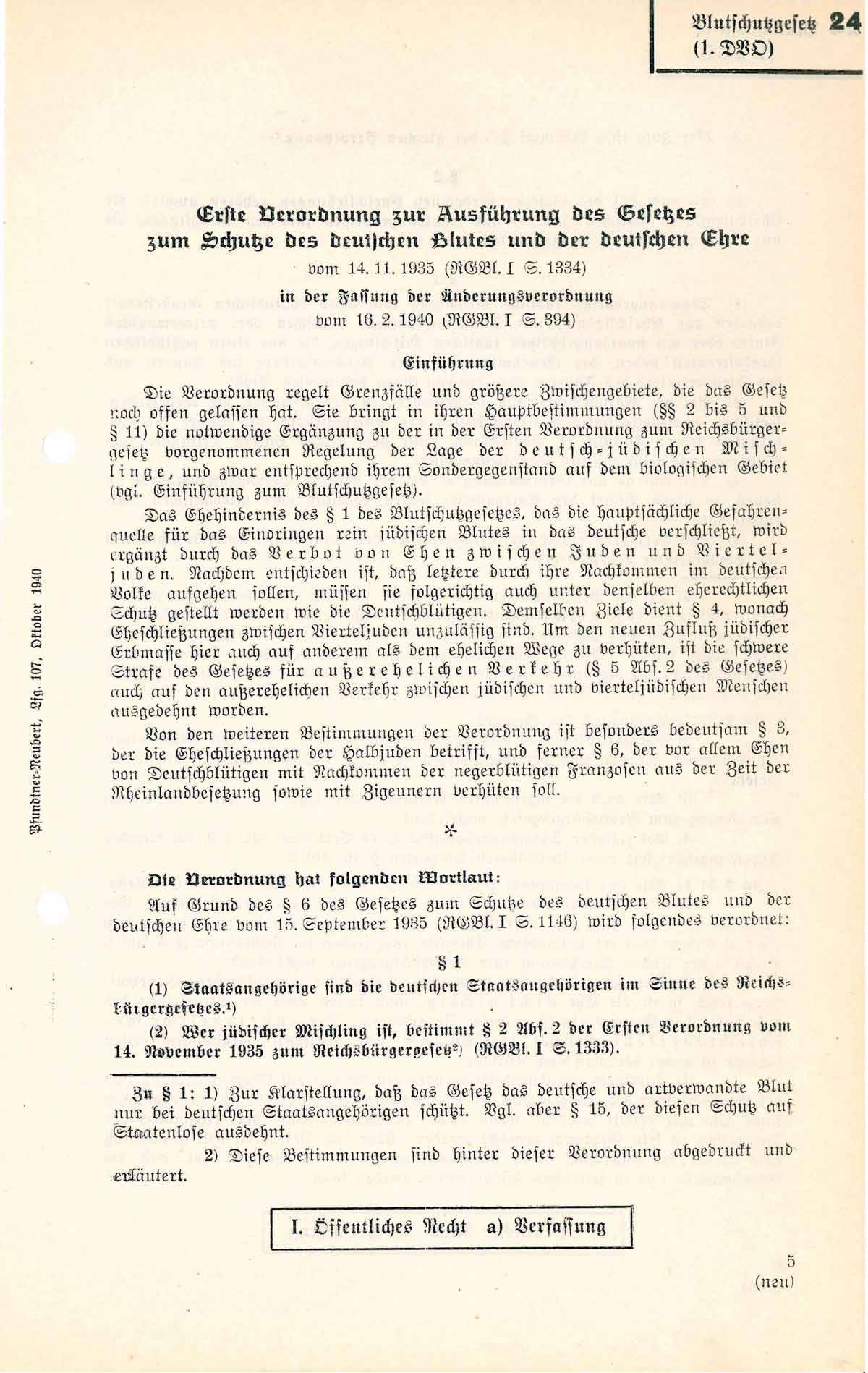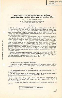 Erste Verordnung zur Ausführung des Gesetzes zum Schutze des deutschen Blutes und der deutschen Ehre vom 14. November 1935