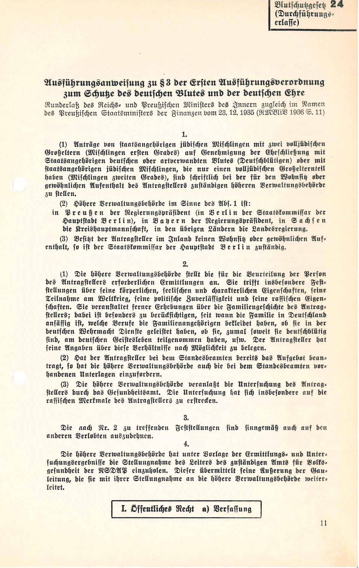 Ausführungsanweisung zu § 3 der Ersten Ausführungsverordnung zum Schutze des deutschen Blutes und der deutschen Ehre vom 23. Dezember 1935